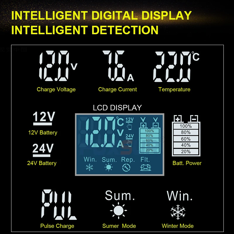 Автомобильное интеллектуальное зарядное устройство 24 В4 а 140 Вт, многоуровневая защита, полностью автоматическое зарядное устройство для аккумулятора, импульсное Цифровое зарядное устройство s