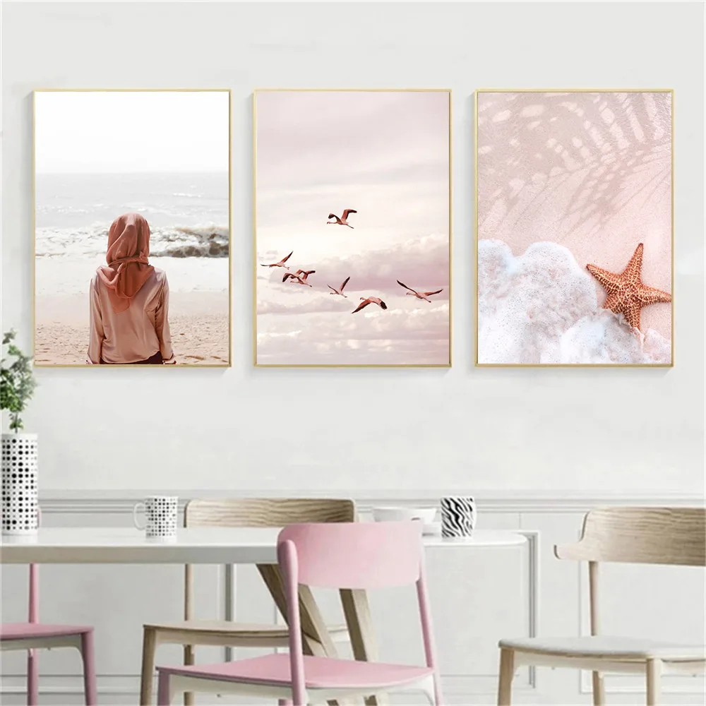 Холщовый постер для мечети, пляжных волн, настенный художественный ...