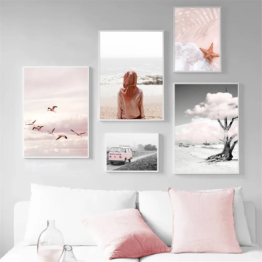 Настенная картина Deram в виде сердца и облака, розовые постеры на ...