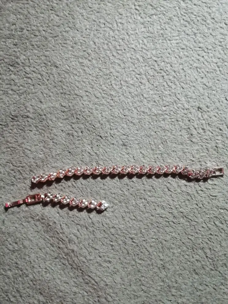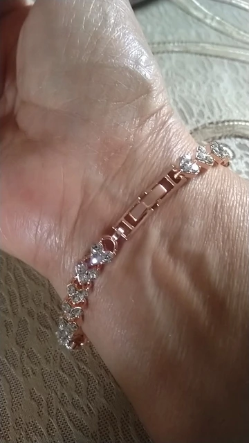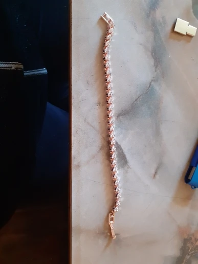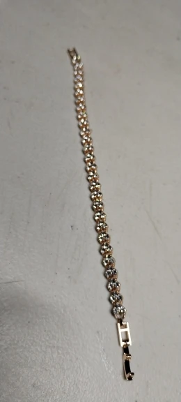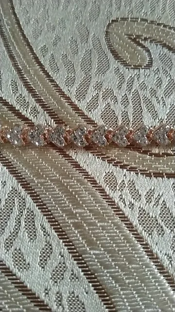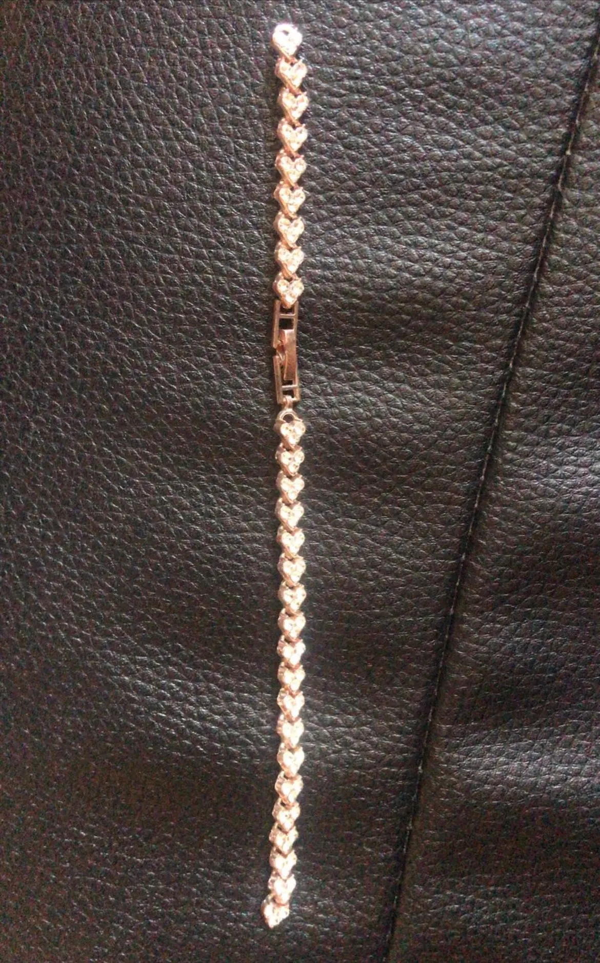 Браслет пришёл быстро, раньше заявленного срока. Камешки блестят хорошо. Он скорее не жёлтый как золото, а с розовым оттенком. Но буду носить, за такие деньги отличная бижутерия!