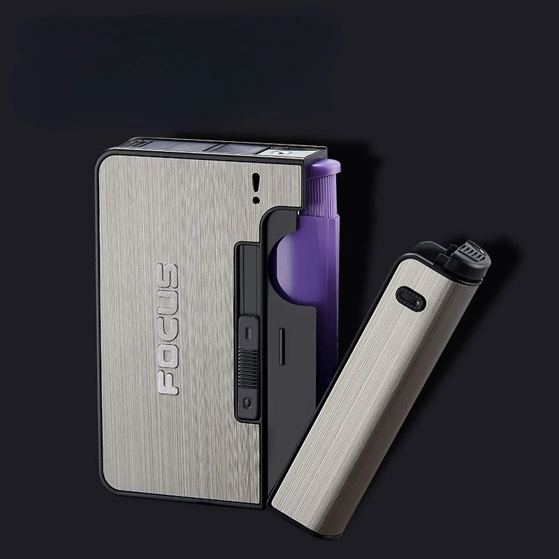 Портативный Автоматический чехол для сигарет, металлические портсигары, 10 шт., чехол для сигарет, прикуриватель, гаджет для мужчин, подарок без зажигалки