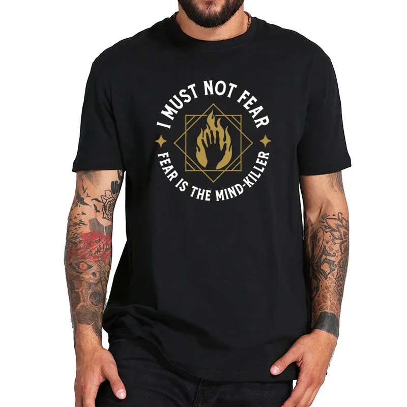 Футболка с изображением дюны, футболка с надписью Litany против страха, я не должен быть страх, страх, это разум-убийца, футболка с изображением эпической научной фантастики, хлопковые футболки 100%