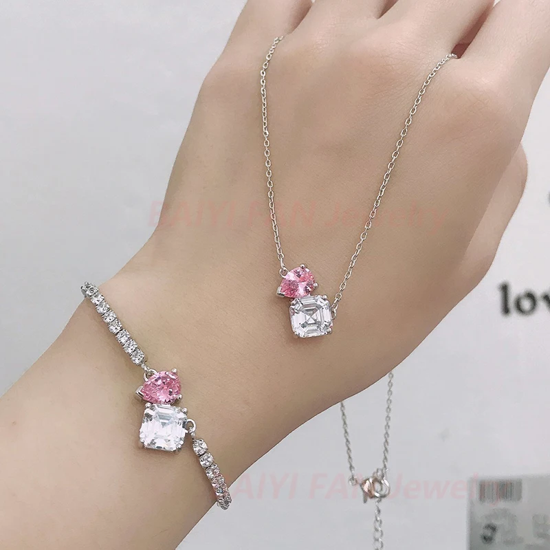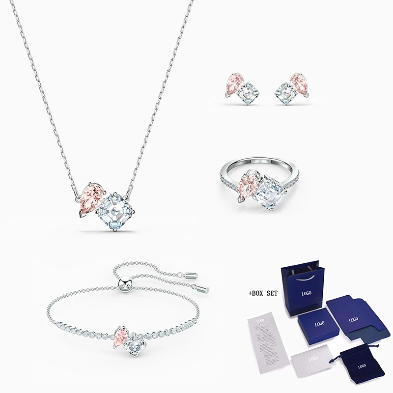 2020 Модный Новый Привлекательный Набор SWA с двумя яркими белыми и розовыми красными кристаллами, ювелирные изделия, женский элегантный романтический роскошный комплект, ювелирные изделия