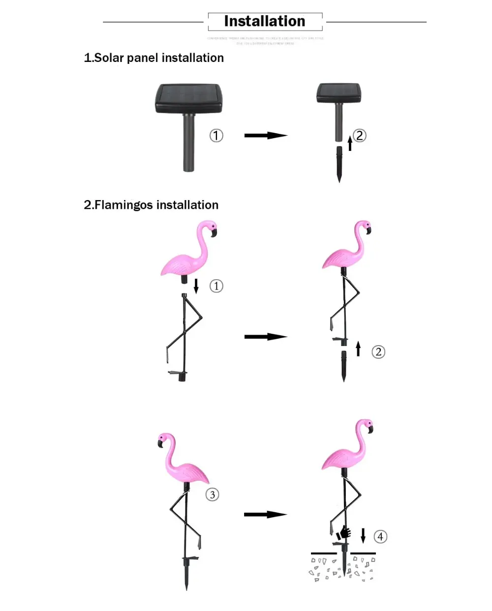 Посылка включает в себя:1 комплект x 3 шт. Солнечная энергия Фламинго огни