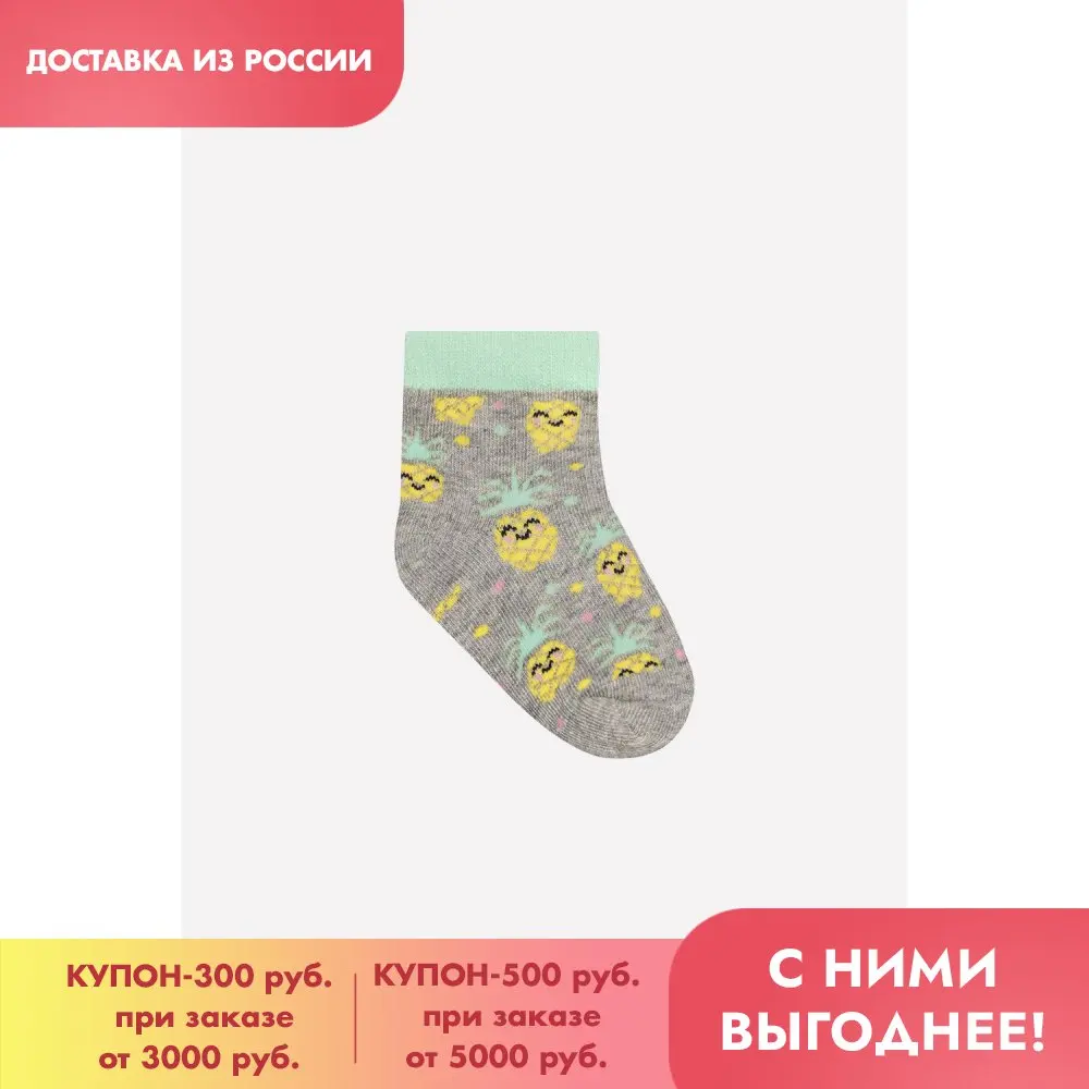 CROCKID, носки, для девочек, К 95746 ФВ, ананасы на св.сером меланже