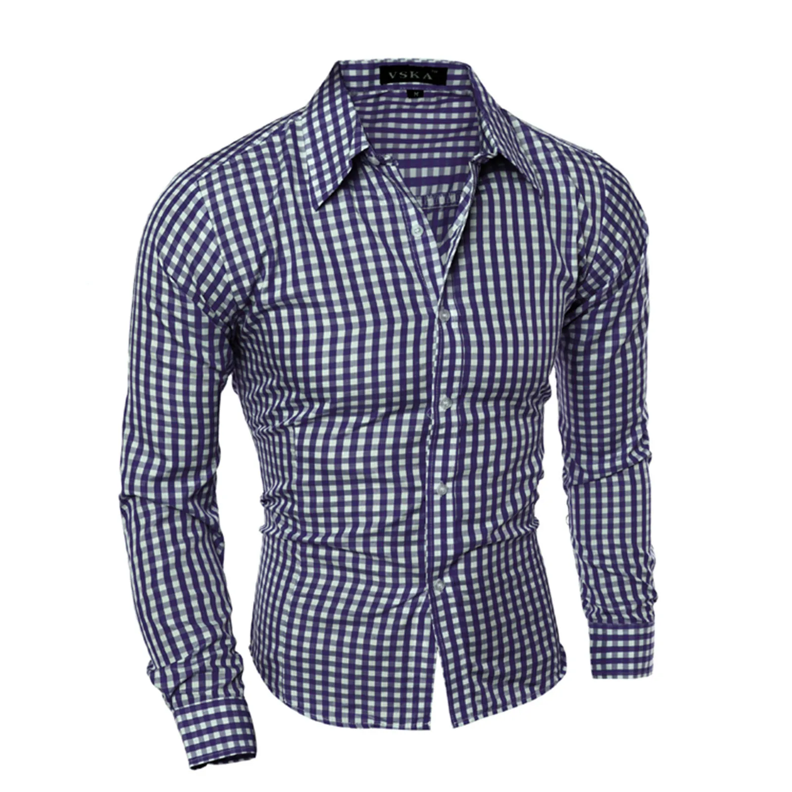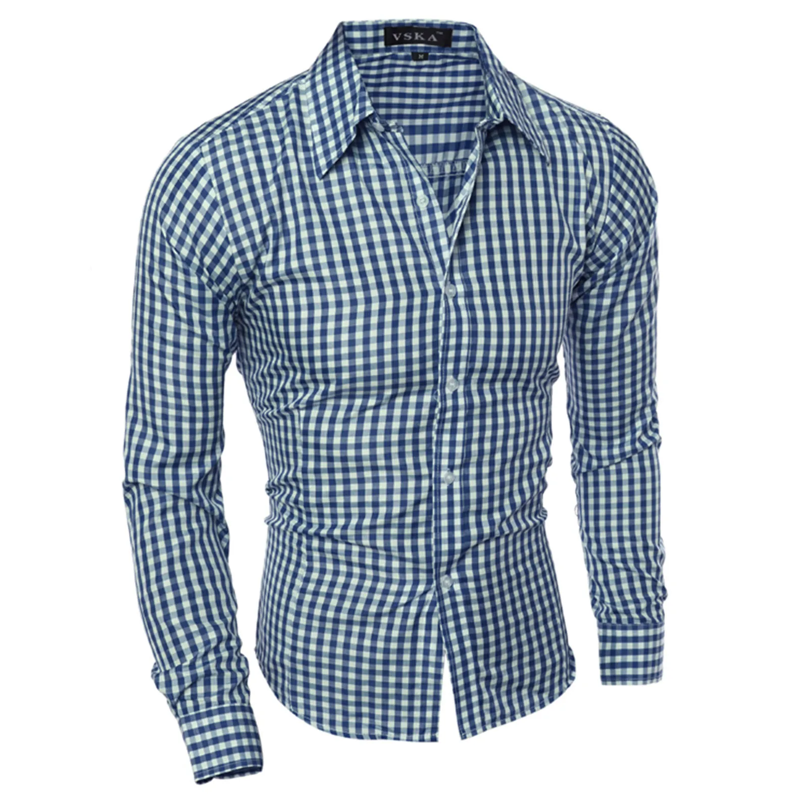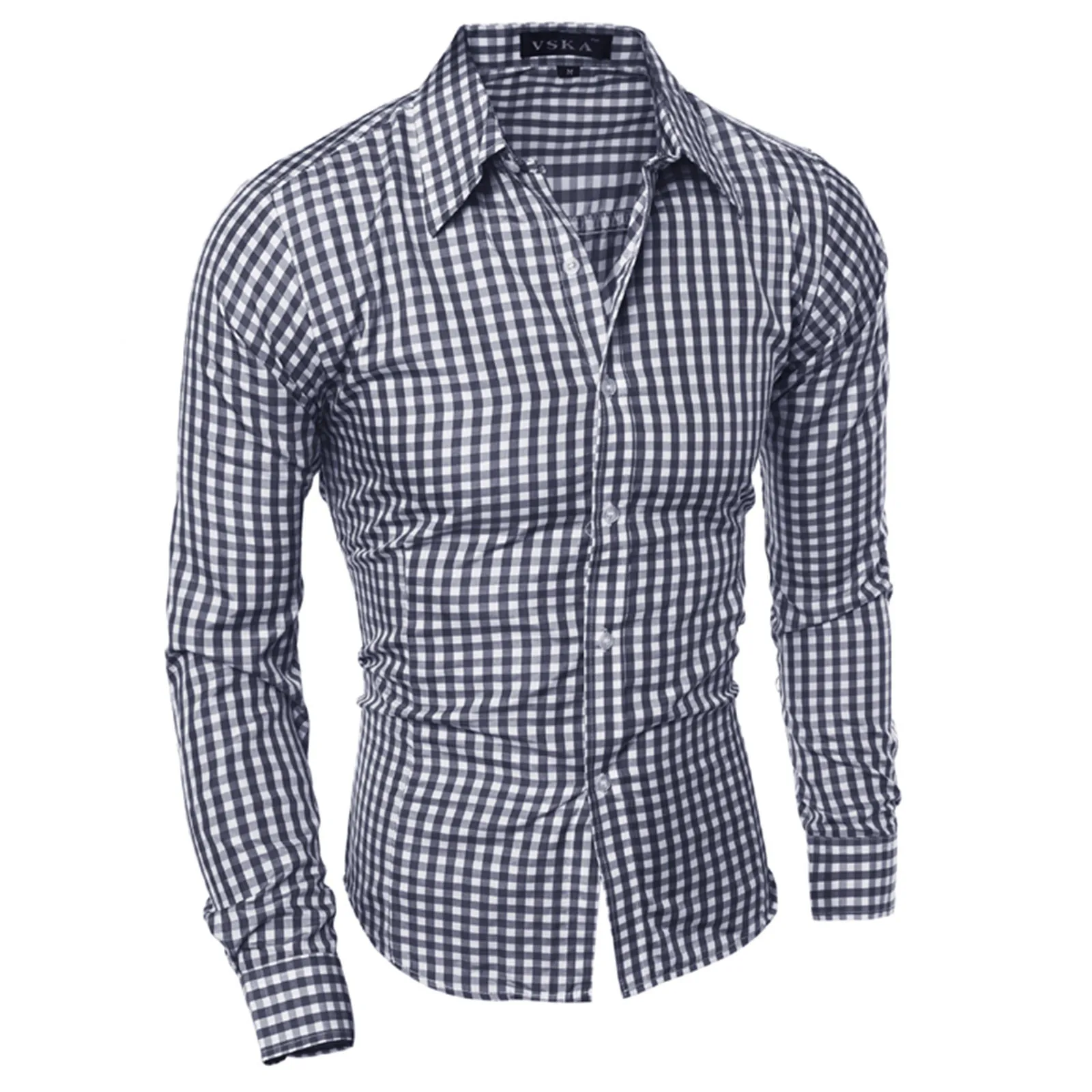 Рубашка мужская в клетку, с длинным рукавом и отложным воротником