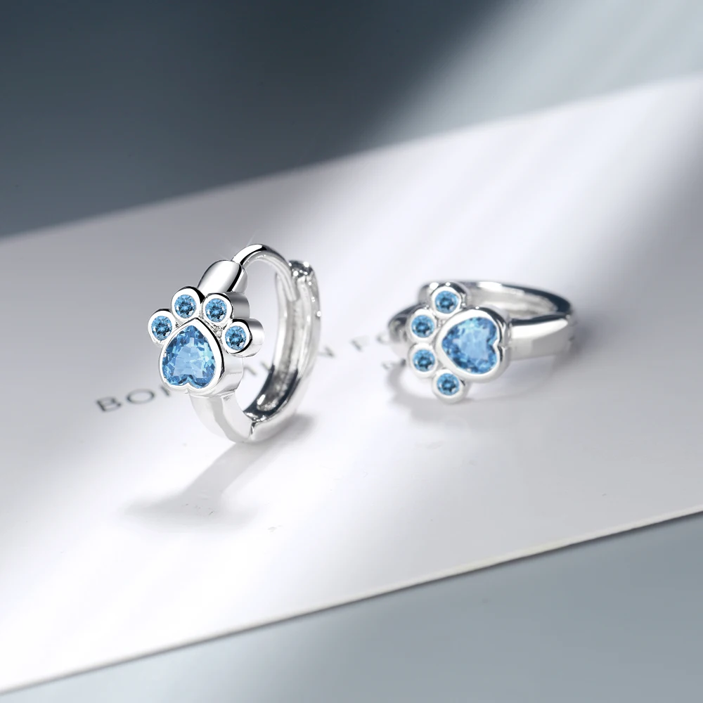 Женские серьги-гвоздики в виде кошачьей лапы, с голубым Цирконом