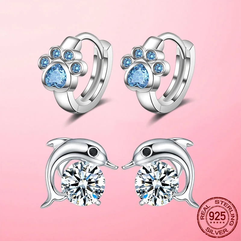 Номер модели925 Sterling Silver Footprint Dolphin Hoop Earrings for Women