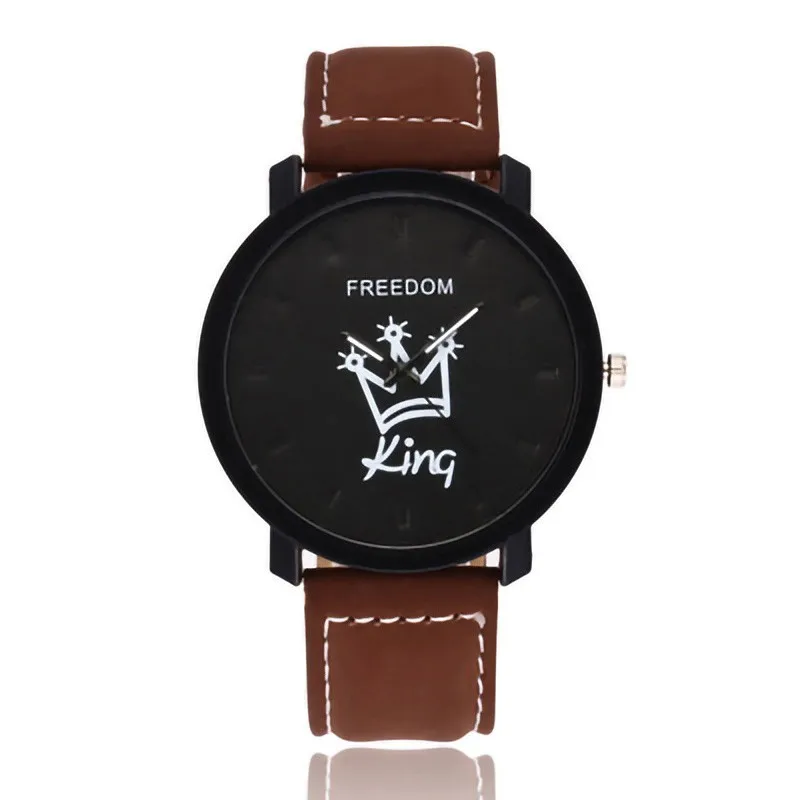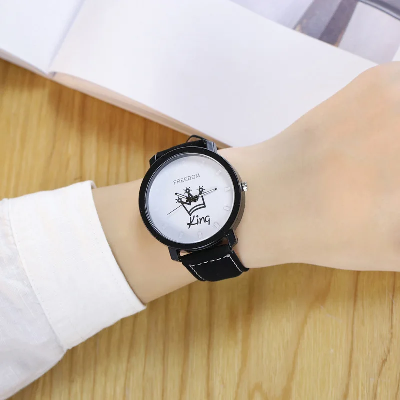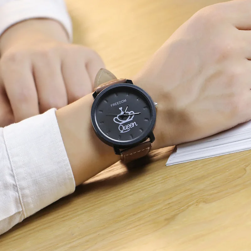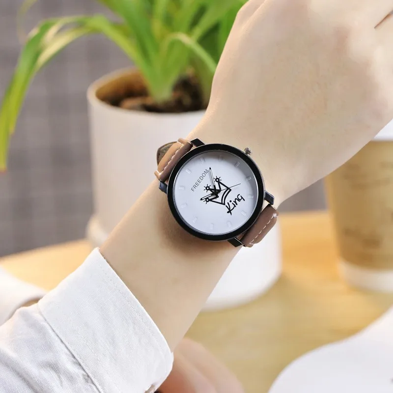 Часы наручные с креативной короной, кварцевые модные дамские и мужские, для влюбленных, с кожаным ремешком, для мужчин и женщин