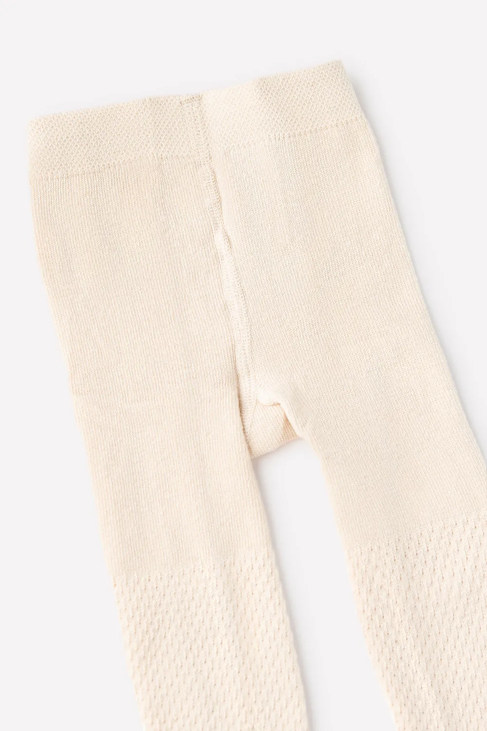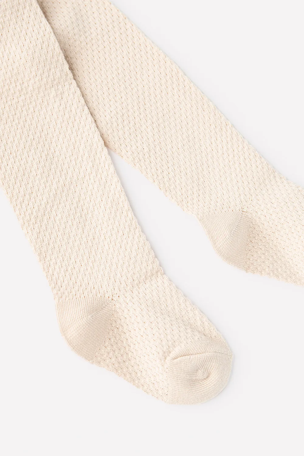 Описание: Нарядные бежевые колготки для девочки с эластичным поясом. Украшены ажурной сеткой.