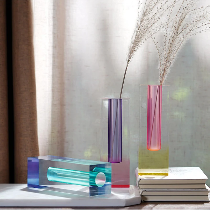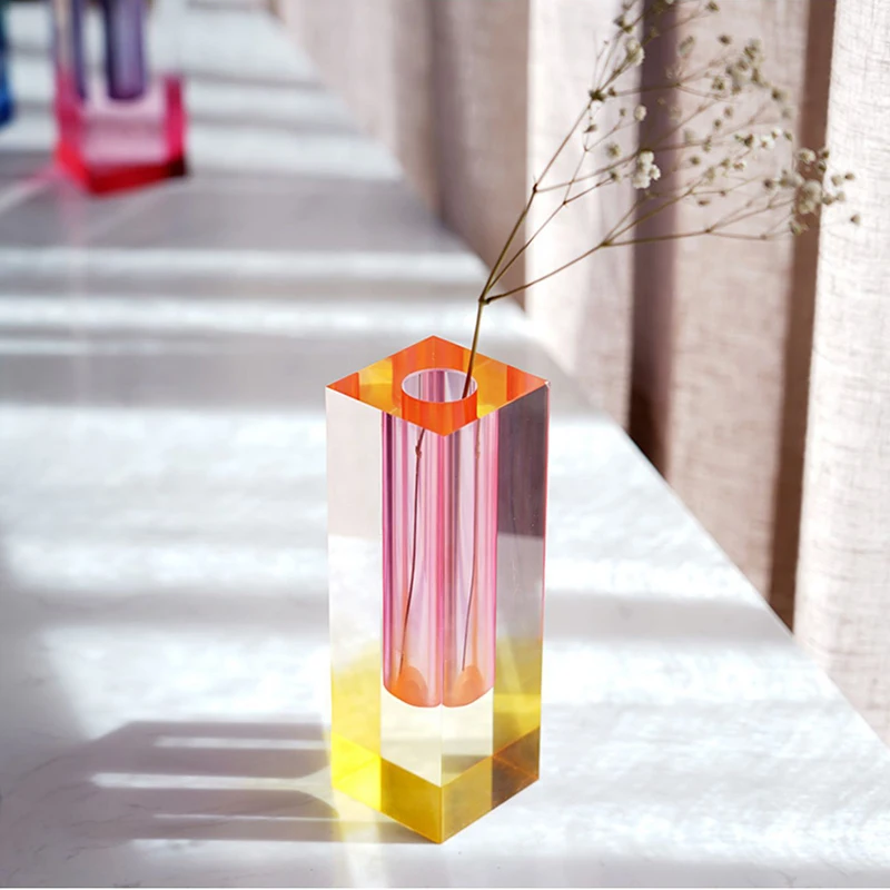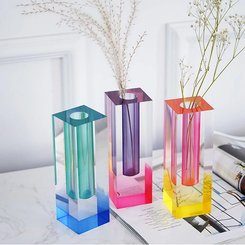1 шт. современная акриловая ваза радужного цвета, столешница Ikebana, кристалл, роскошная пробирка, цветочный горшок, скандинавский Декор для дома