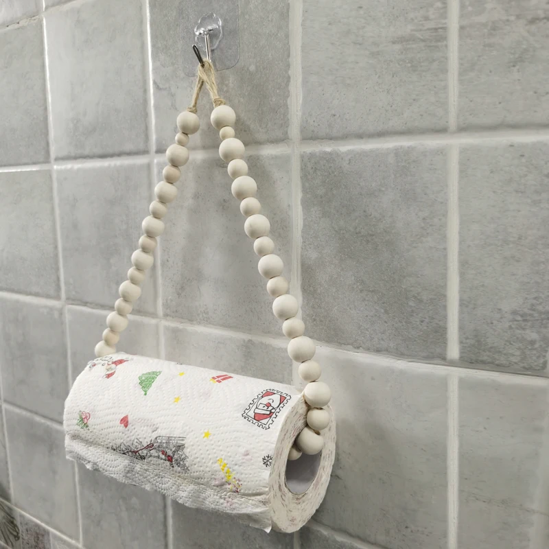 Современный настенный держатель для туалетной бумаги, винтажный держатель для полотенец с деревянными бусинами, держатель для кухонных бумажных полотенец, украшение для ванной комнаты