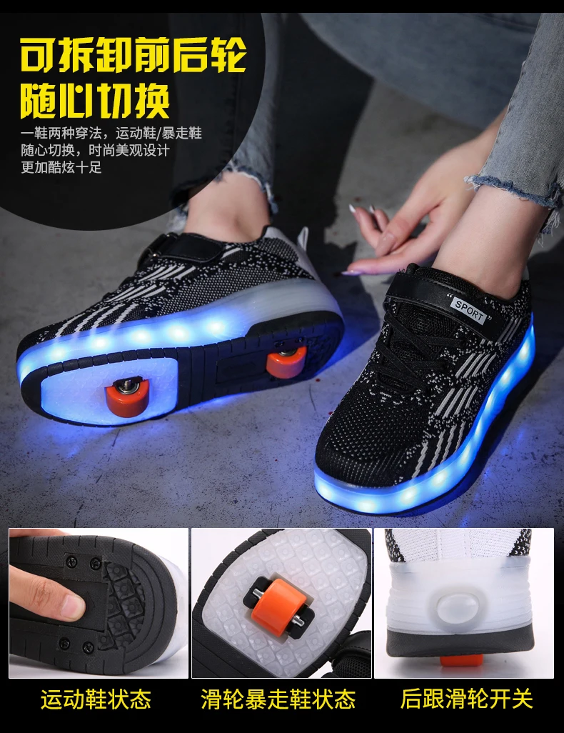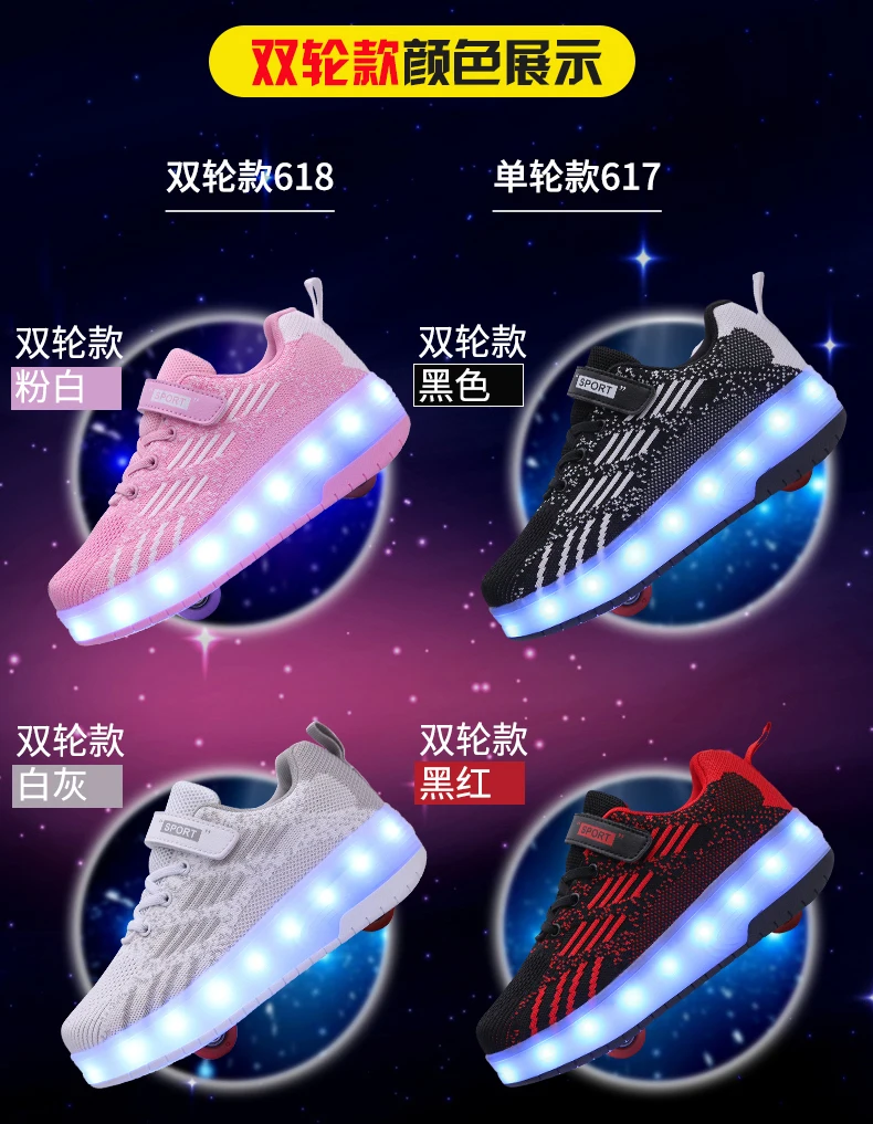 Светящиеся кроссовки на колесах, со светодиодсветодиодный подсветко...