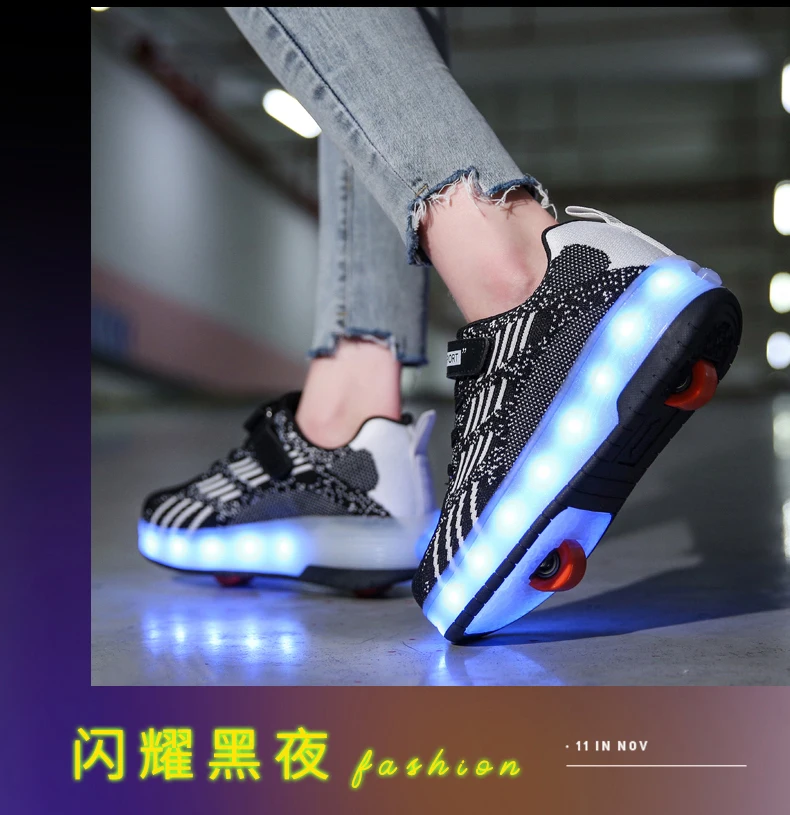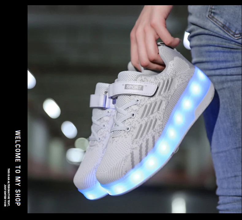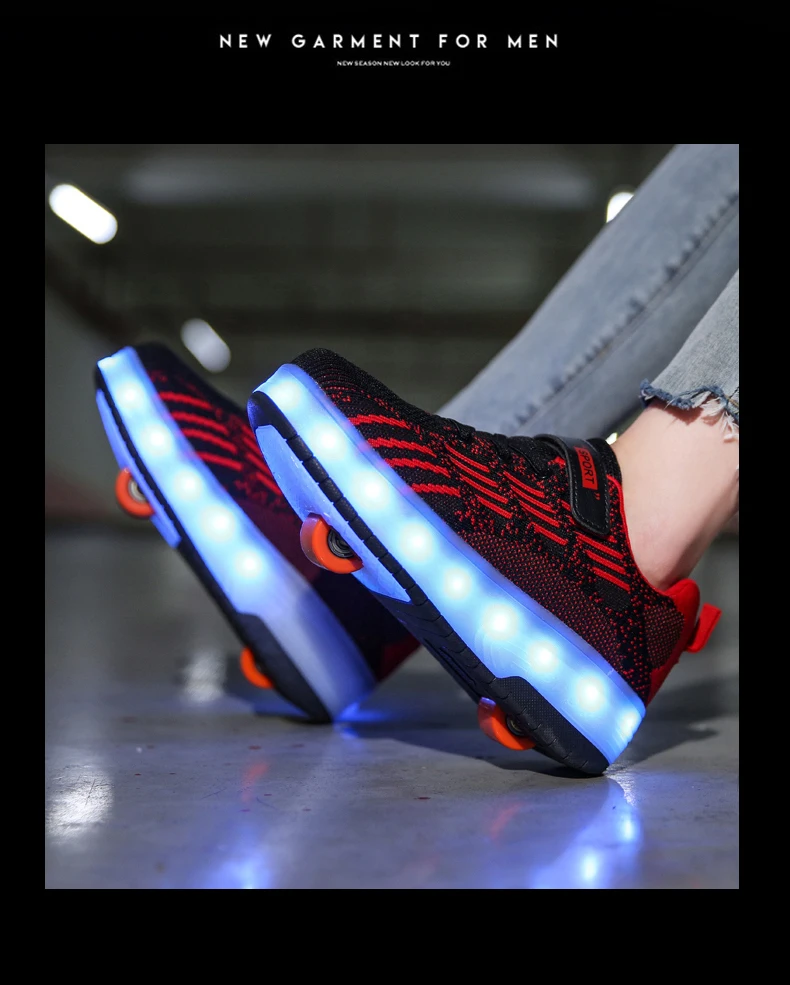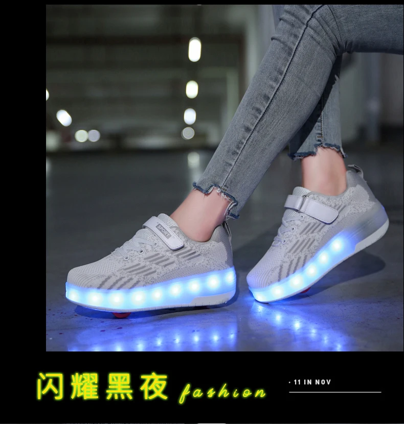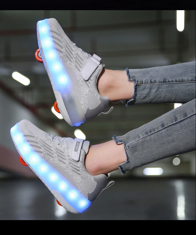Светящиеся кроссовки на колесах, размер 28-40, USB зарядка, светящи...