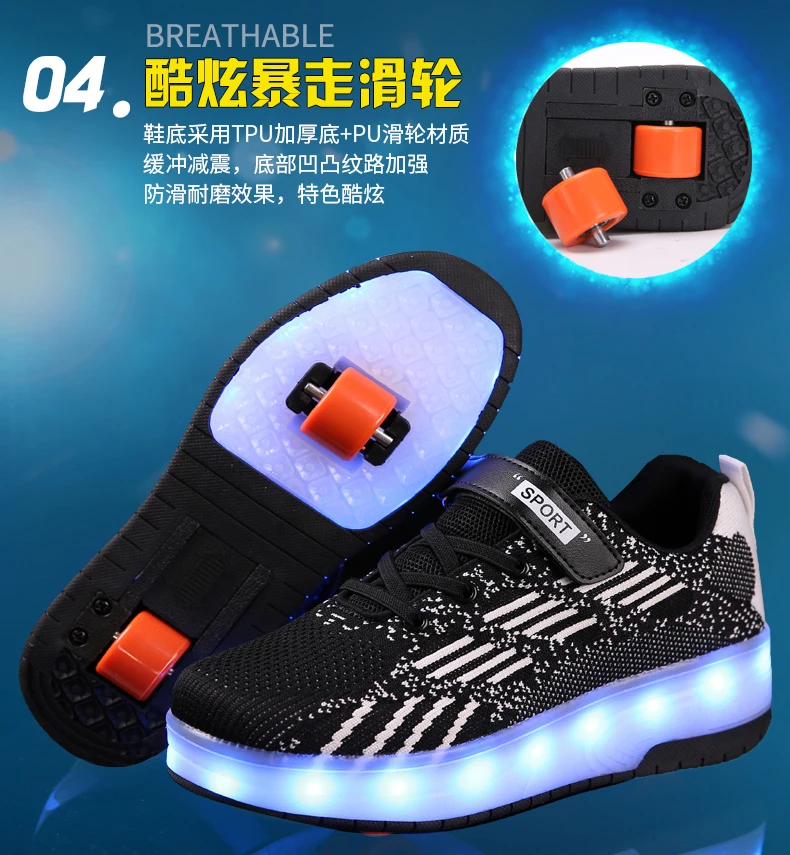 Кроссовки детские, на колесиках, с автоматической зарядкой по USB