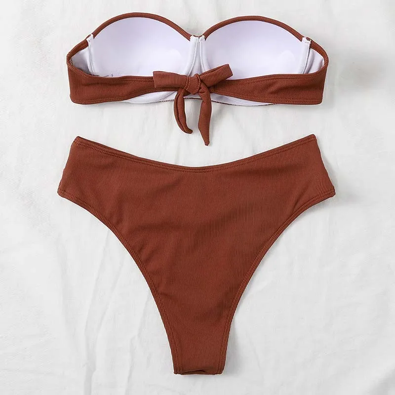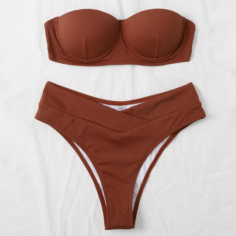 Пикантное бикини INGAGA, женский купальник-бандо, новинка 2022, купальник пуш-ап, купальные костюмы с высокой талией, однотонное бикини в рубчик, пляжная одежда