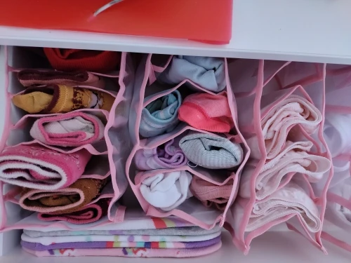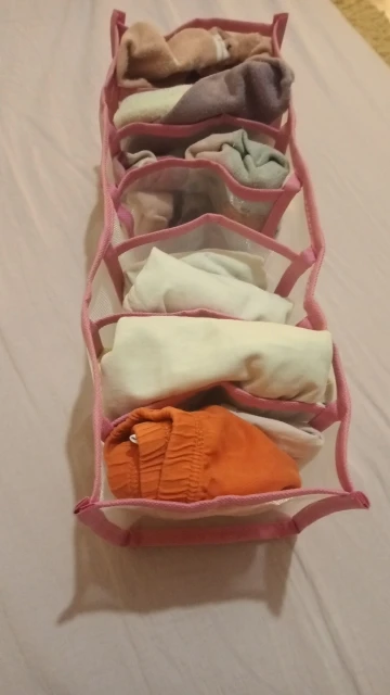 Палец так себе! Я рад, что купил 2 комплекта! Мне нравится этот продукт, потому что он довольно простой и легкий, и идеально подходит в ящиках. Теперь мои носки, бюстгальтеры и унитазы аккуратно организованы и легко получить доступ --- без суеты и мусов. Я не могу перестать смотреть на это и восхищаться этим!