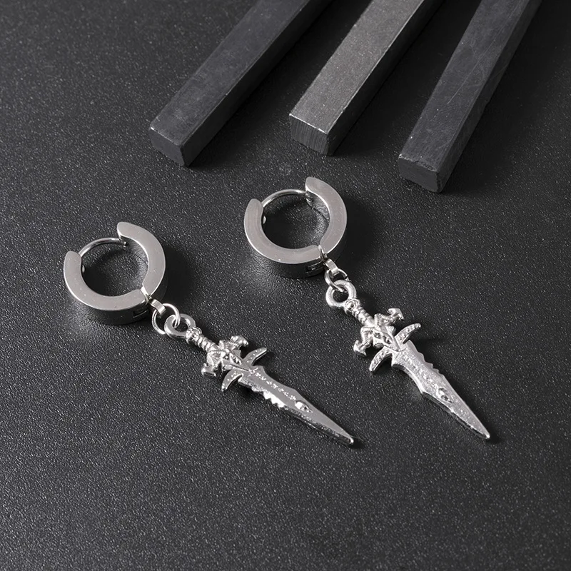 Винтажные серьги-подвески с кинжалом для женщин и мужчин, серебрист...