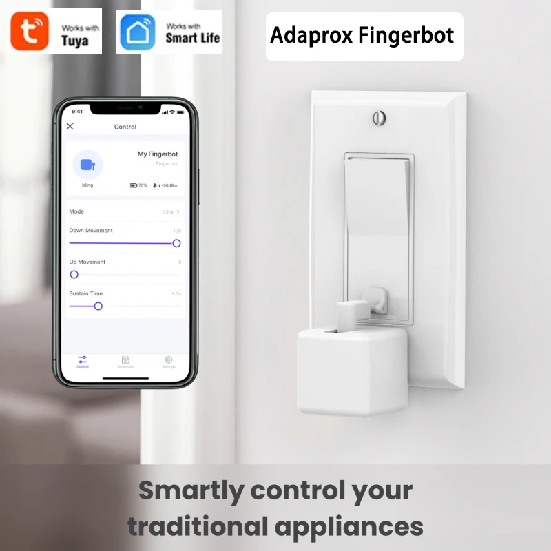 Набор инструментов Fingerbot может даже помочь вам с удаленным планированием. Комплект обеспечивает правильную роботизированную руку для работы с любой формой кнопки. Что вам нужно, это хорошее и стабильное подключение к Интернету. Затем вы можете управлять и удаленно управлять всеми подключенными устройствами через мост Adaprox через умные устройства. Если вы не дома, вы также можете чувствовать себя в безопасности, включив устройство.