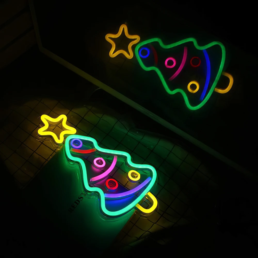 Рождественская елка, неоновый светильник, вывеска с питанием от USB, настенный подвесной Красочный светодиодный неоновый светильник для свадьбы, праздника, спальни, праздничный Декор светодиодная вывеска елка новый год