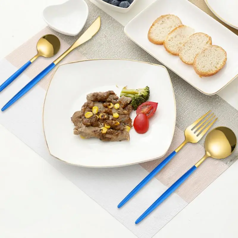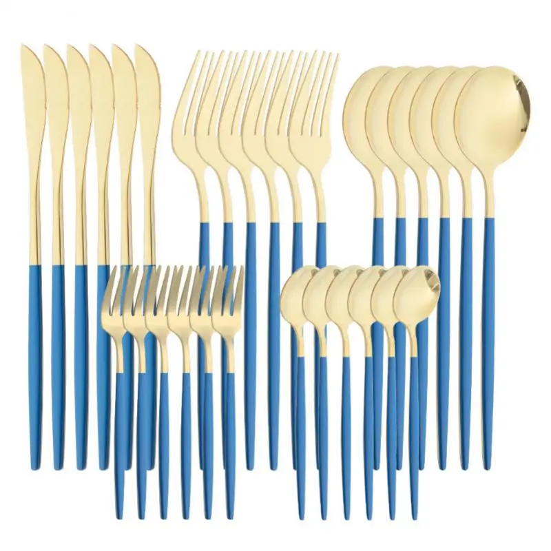 Набор столовых приборов из нержавеющей стали, комплект из 30 столовых приборов черного и золотого цвета, ложка, вилка, нож, домашняя посуда