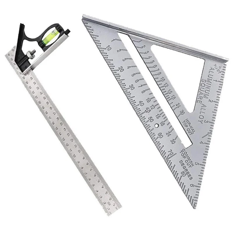 7 дюймов Треугольная линейка 90 градусов Квадратная линейка Инструмент для измерения деревообработки Угловой транспортир Инженерная комбинированная линейка