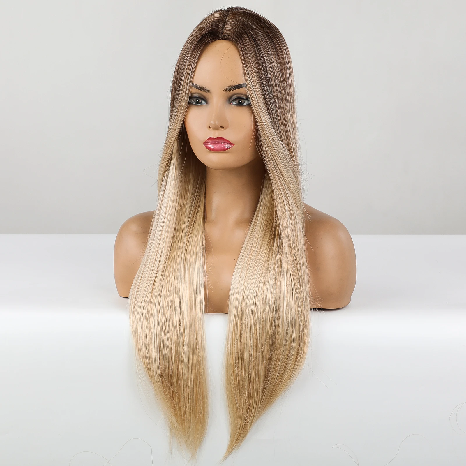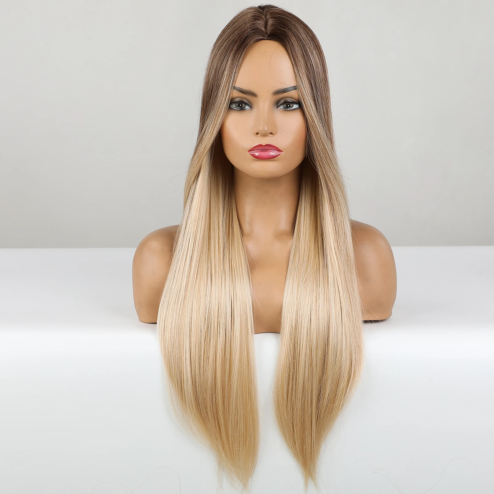 Длинные прямые синтетические парики Омбре, коричневые, светлые волосы, парики для косплея, вечерние, натуральные, средняя часть, парик для женщин, Термостойкое волокно