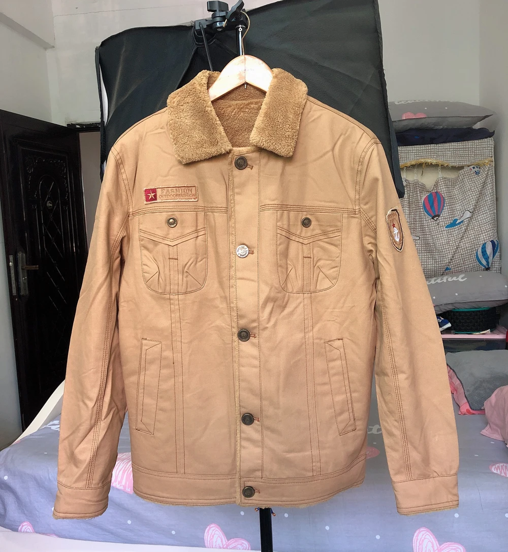 Куртка мужская из чистого хлопка, толстая теплая ветровка, пальто с...