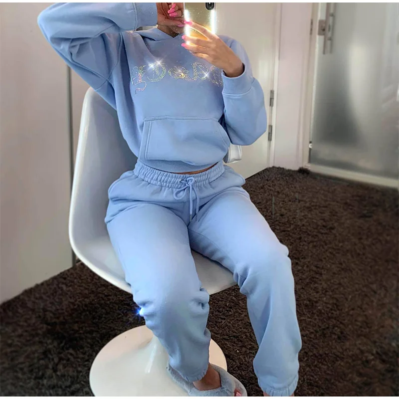 Женский комплект из 2 предметов, спортивный костюм со стразами, бархатная укороченная куртка с надписью, спортивный костюм, Джоггеры для женщин, весна 2021