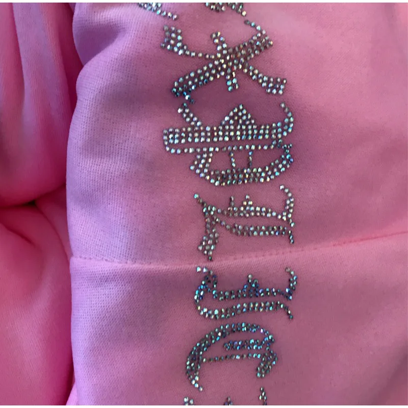Костюм спортивный женский, с капюшоном и надписью со стразами, с дл...