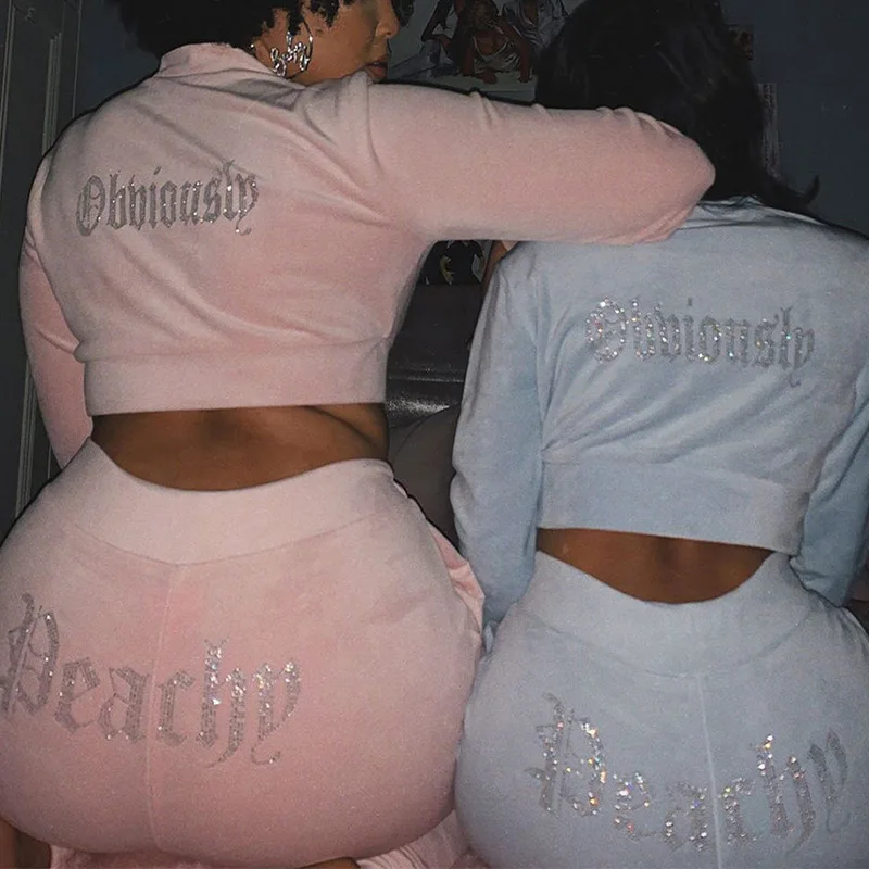 Женский костюм Стразы с надписью из 2 предметов, бархатный укорочен...