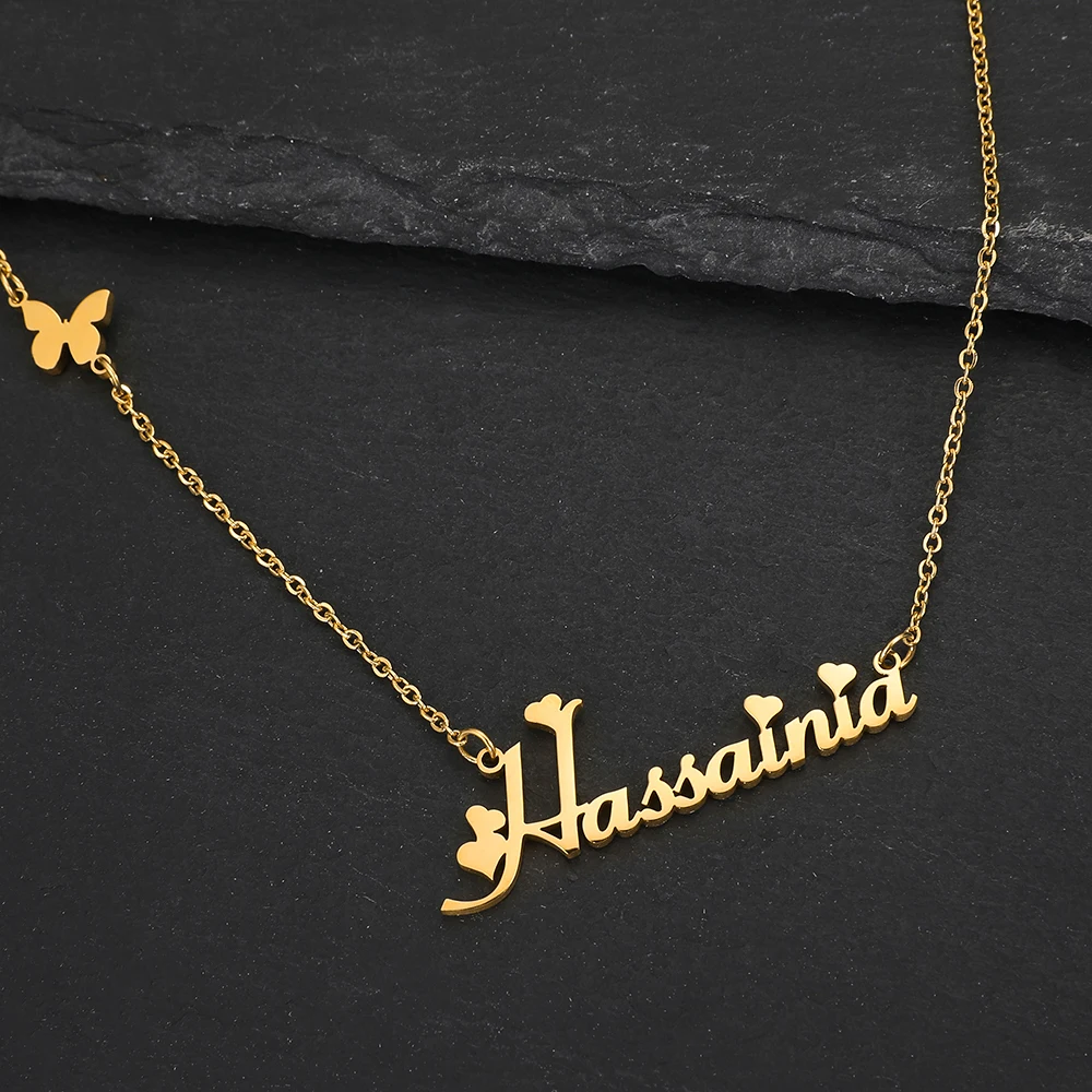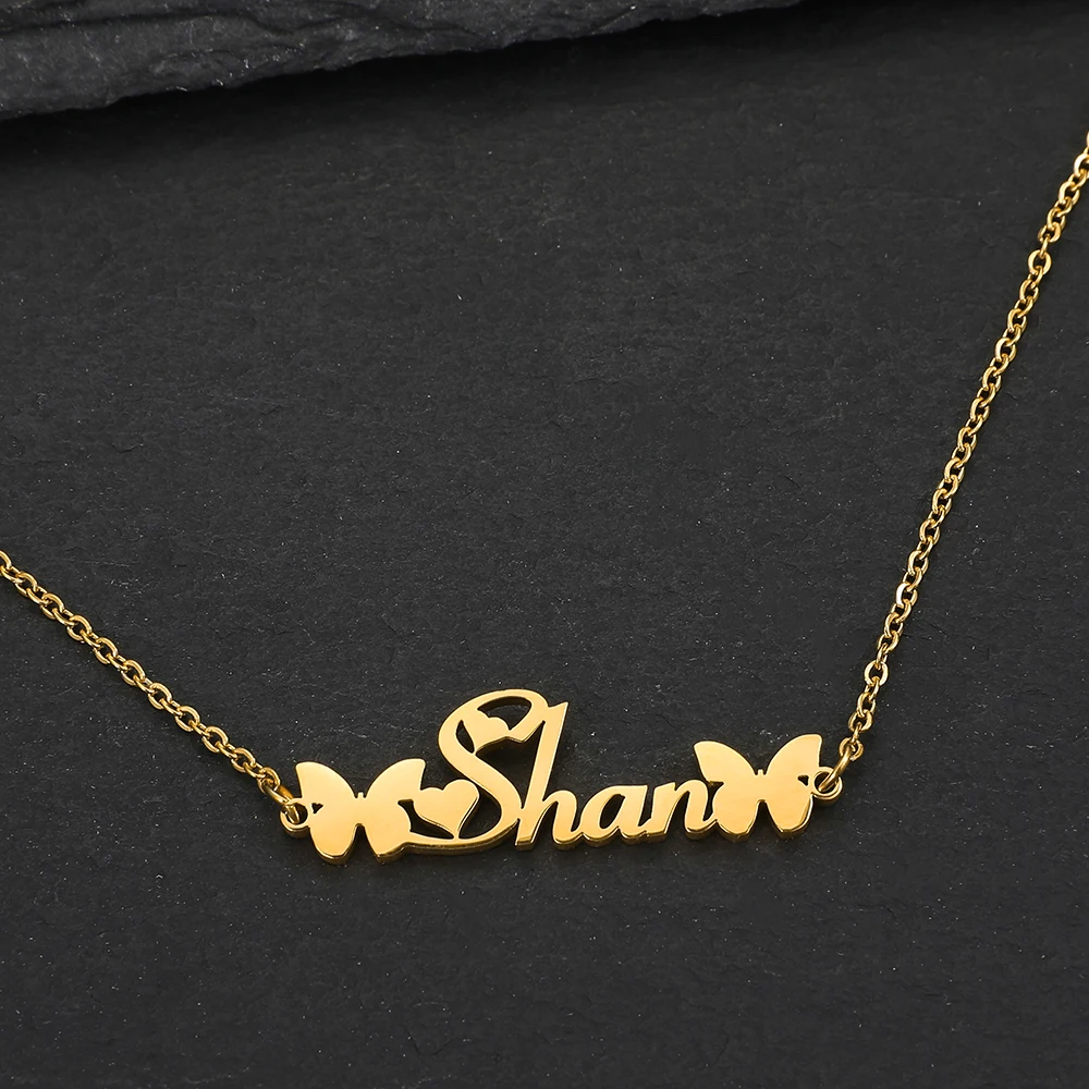 Ожерелье женское из нержавеющей стали с именем и бабочкой