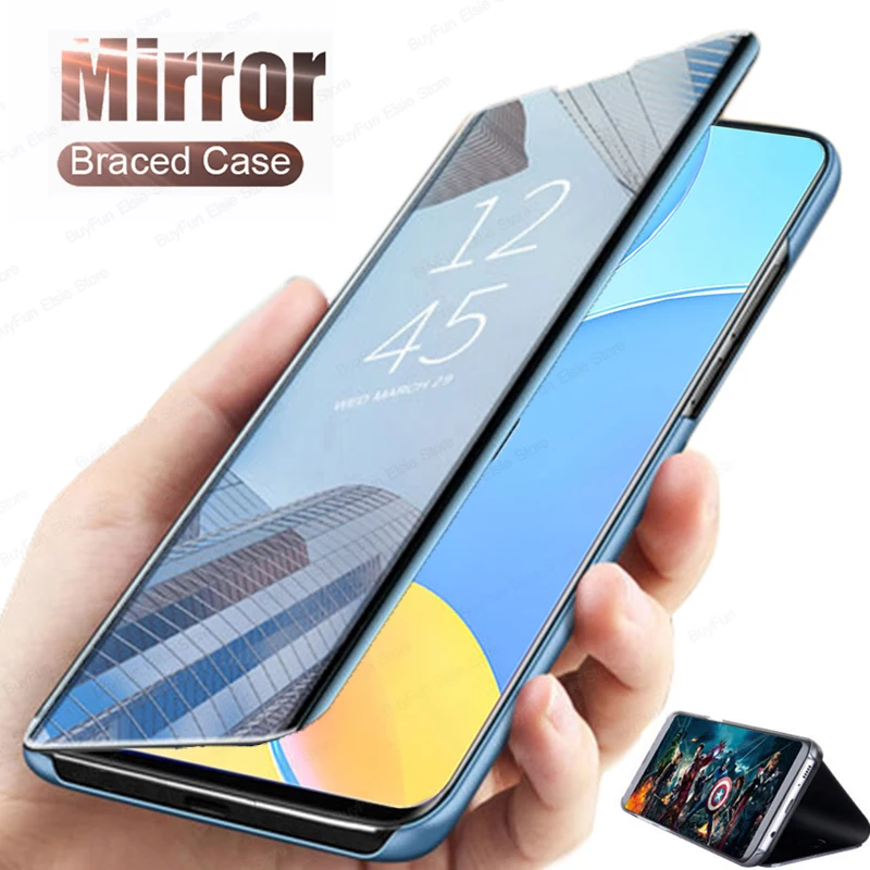 Чехол для Realme C21, умный зеркальный флип-чехол для Oppo realme c...