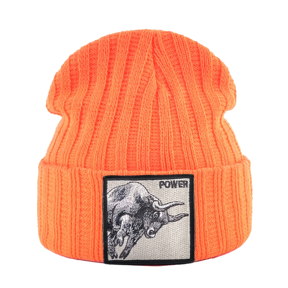 Зимние вязаные шерстяные шапки для мужчин, шапка с вышивкой и рисунком быка, согревающие шапки, шапки, Мужские Лыжные шапки, шапка в стиле хип-хоп