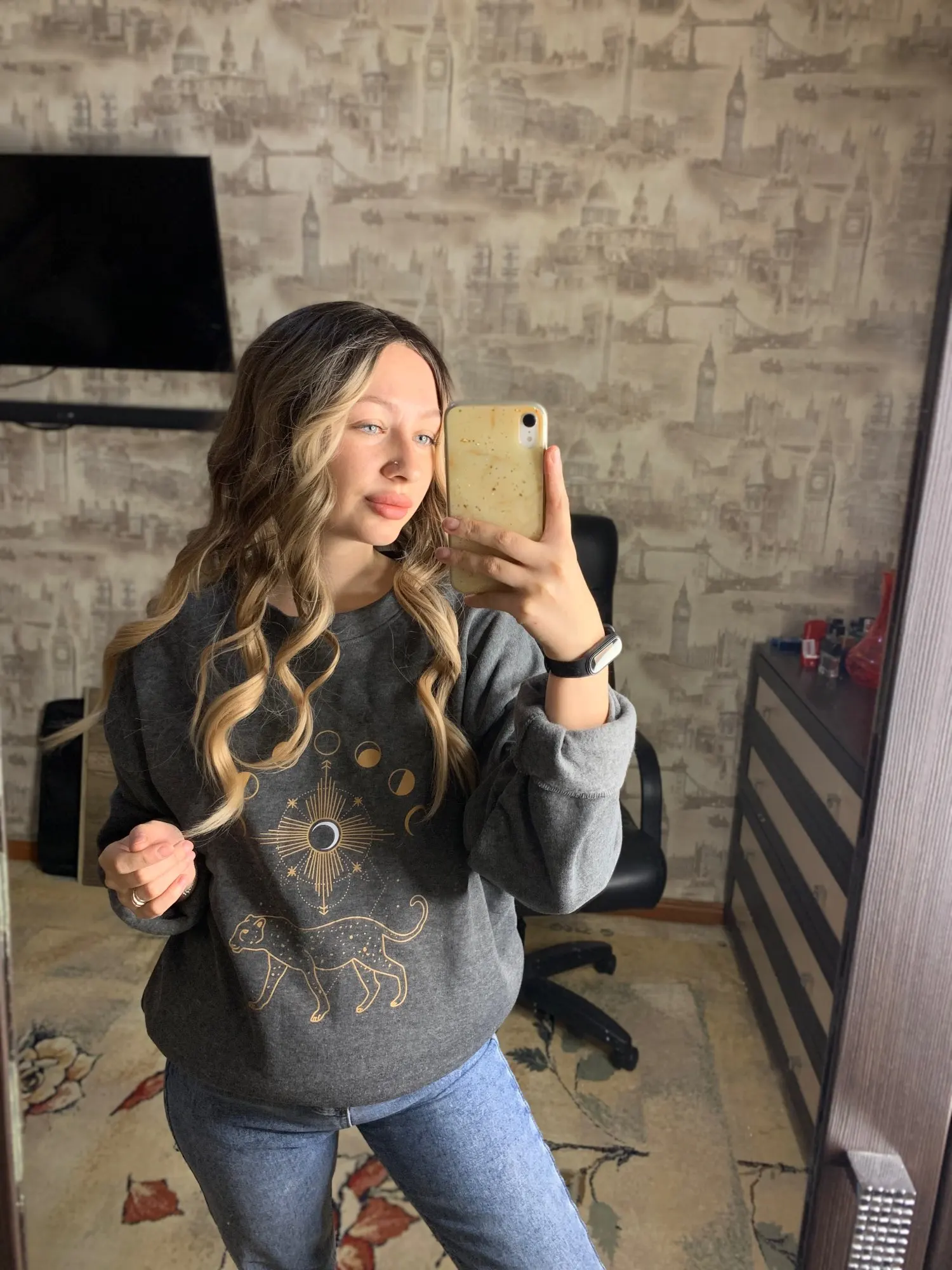 Женский свитшот с круглым вырезом, длинным рукавом и принтом Луны