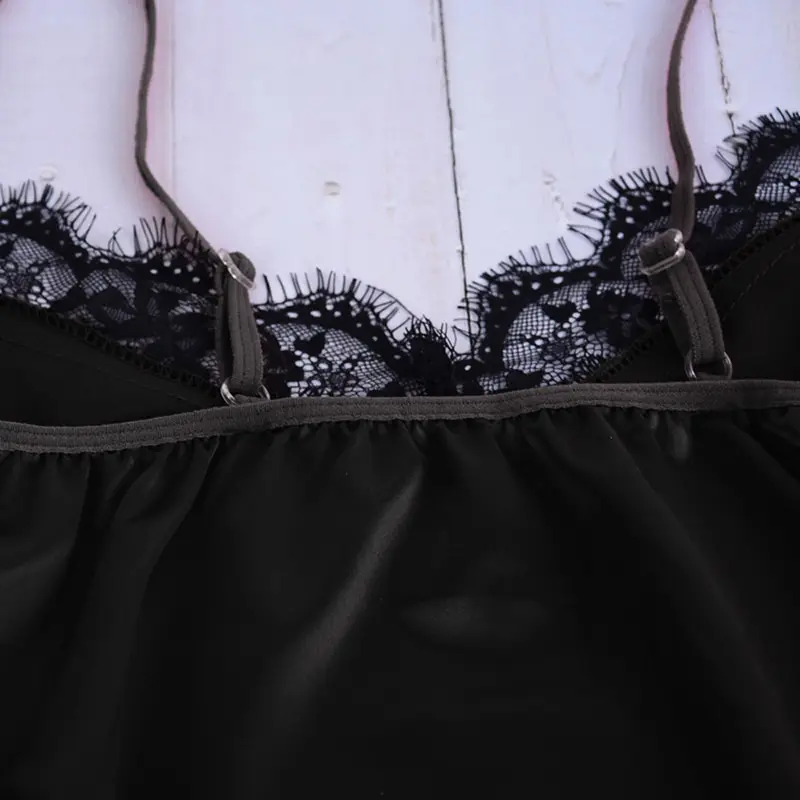 Отдельные 2 шт. кружевные пижамы, женское пляжное платье, нижнее белье, ночная сорочка без рукавов, Женская атласная ночная рубашка через La, одежда для сна, Прямая поставка
