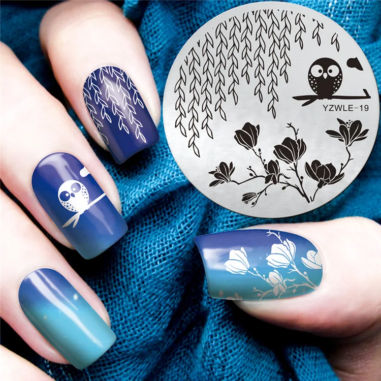 Пластины для стемпинга ногтей, трафареты для маникюра с листьями, цветами и полосками