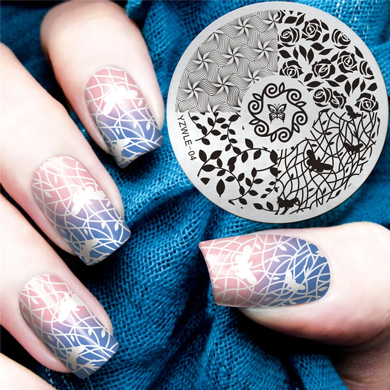 Роза цветок набор для стемпинга и нейл-шаблон цветка мандалы бабочк...