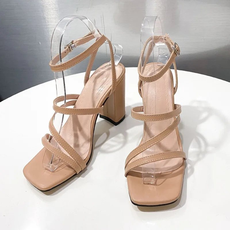 Сандалии женские, на высоком каблуке, с квадратным носком, на тонко...