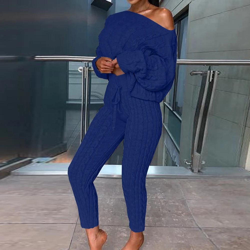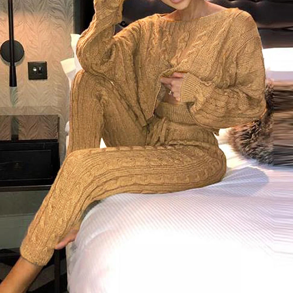 Женский вязаный свитер, комплект из 2 предметов, теплый шерстяной свитер с круглым вырезом, домашний костюм, 2021