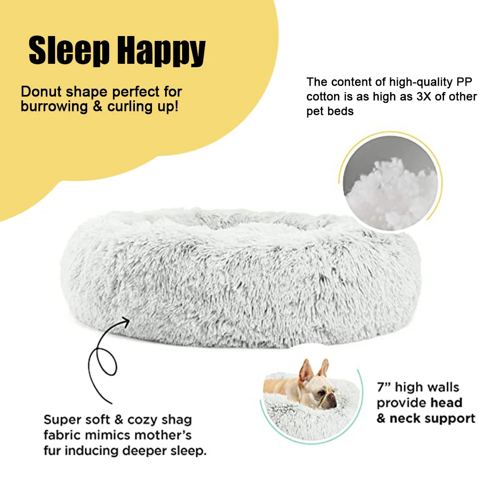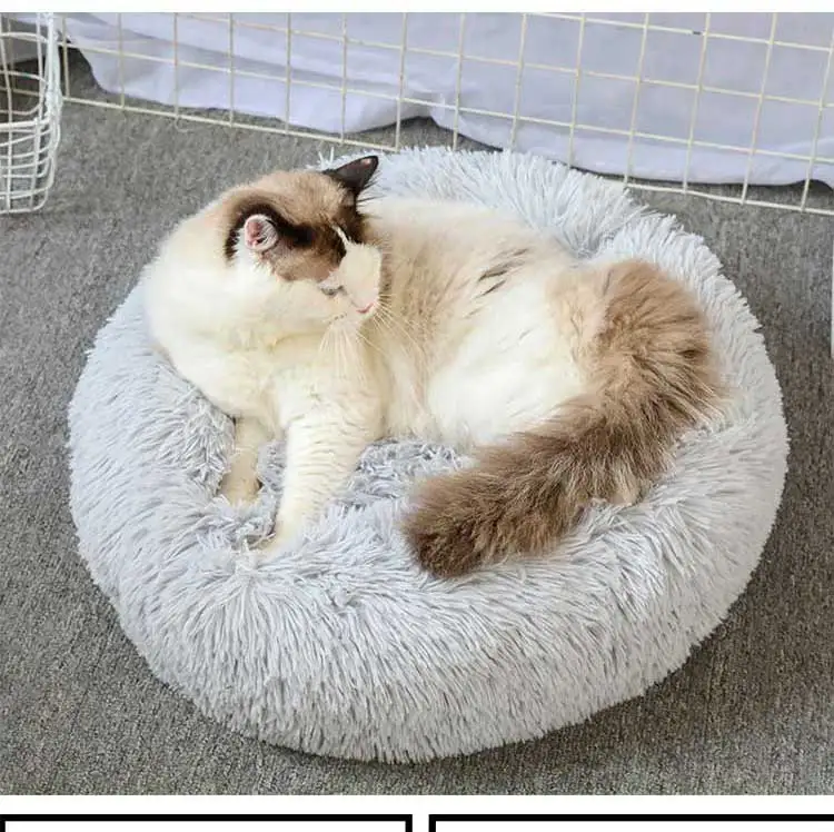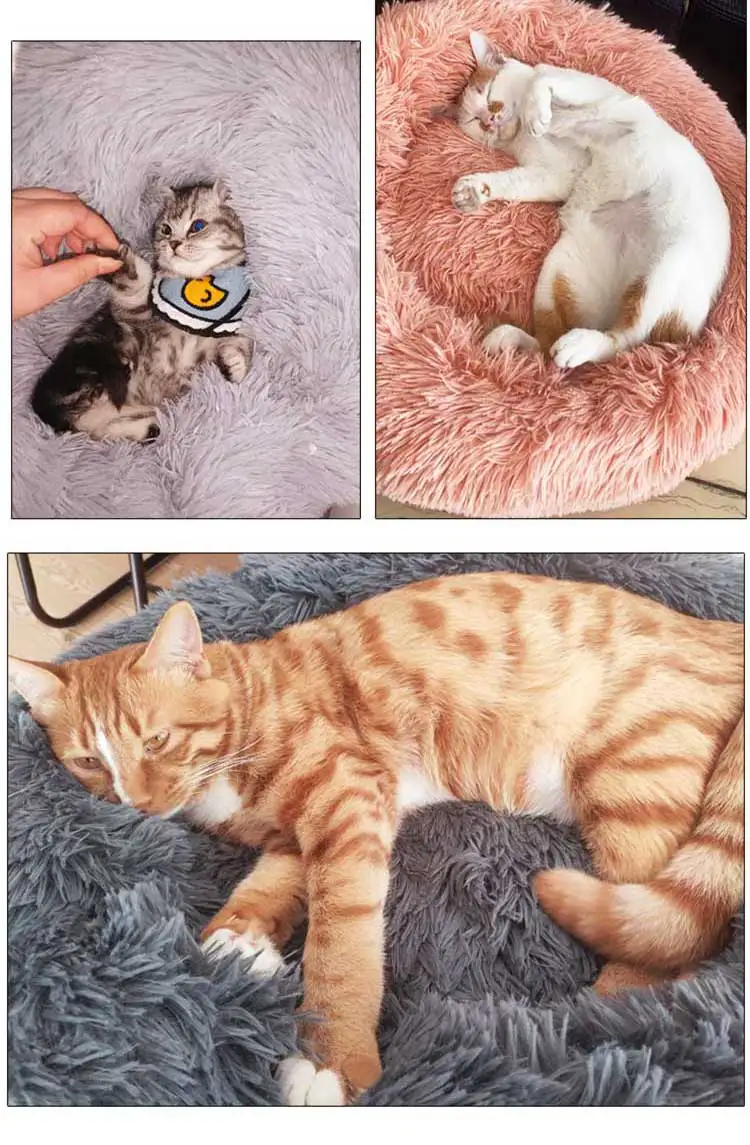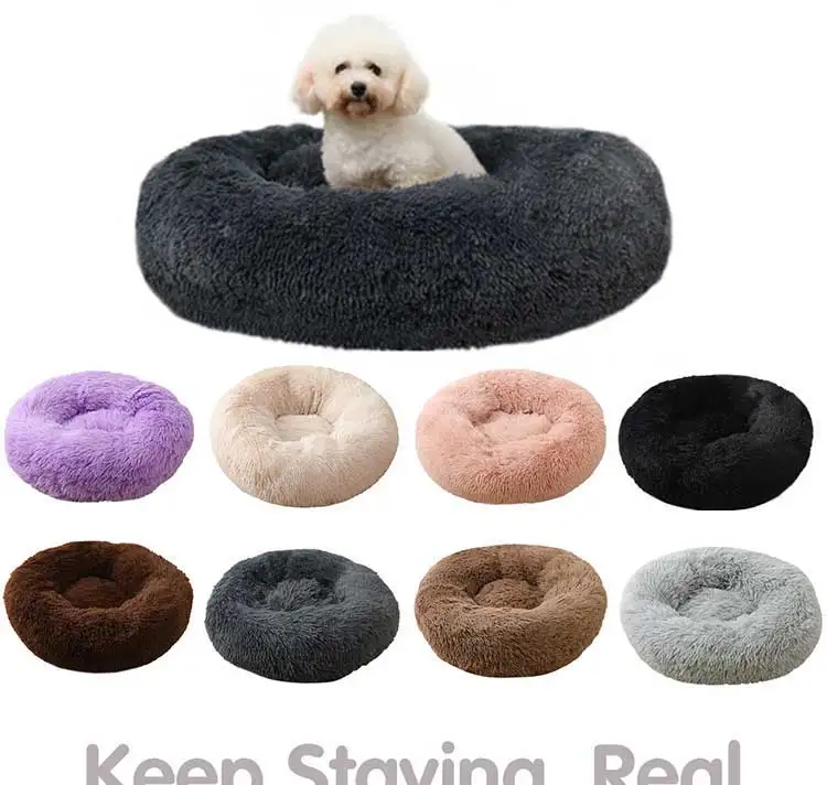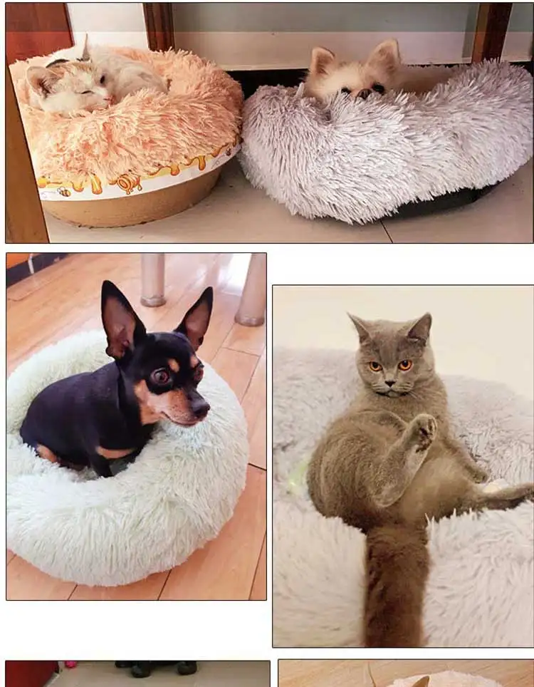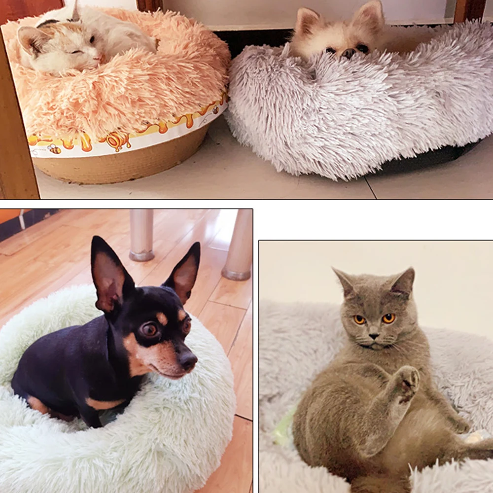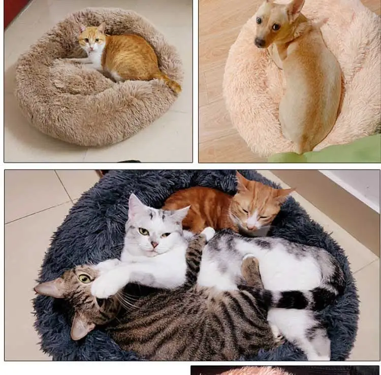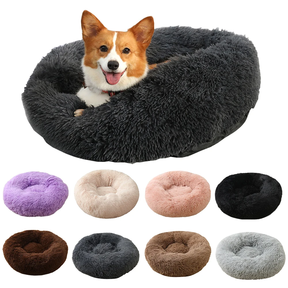Круглая кровать для собак, кровать для кошек, плюшевый сверхмягкий диван-кровать, подходящий для маленьких, средних и больших собачьих будок, чтобы согреться зимой, можно стирать и стирать в стиральной машине