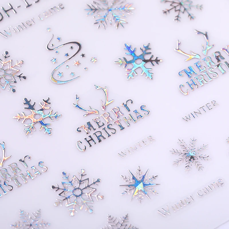 3D-Наклейки для ногтей, 1 шт., переливающиеся Серебристые снежинки, Рождественский олень, самоклеющиеся Переводные Слайдеры для Типсы для маникюра