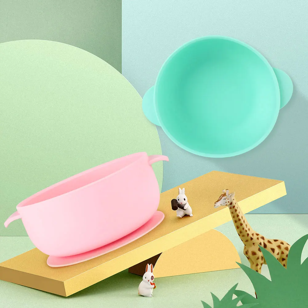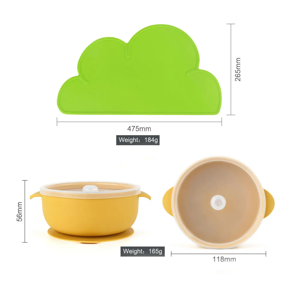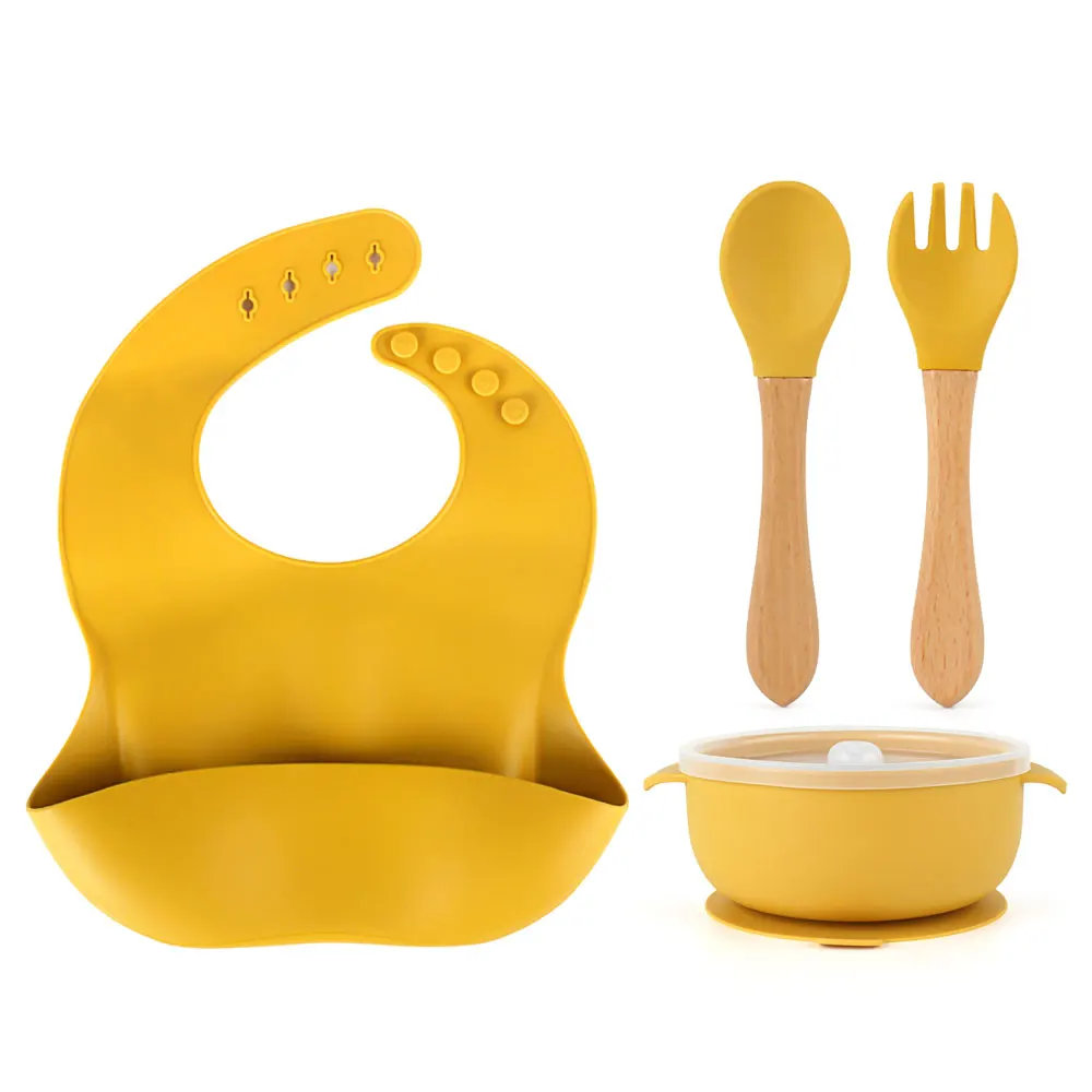 Детская миска, ложка, вилка, нагрудник, набор посуды, Нескользящая силиконовая миска для кормления с крышкой, детская посуда