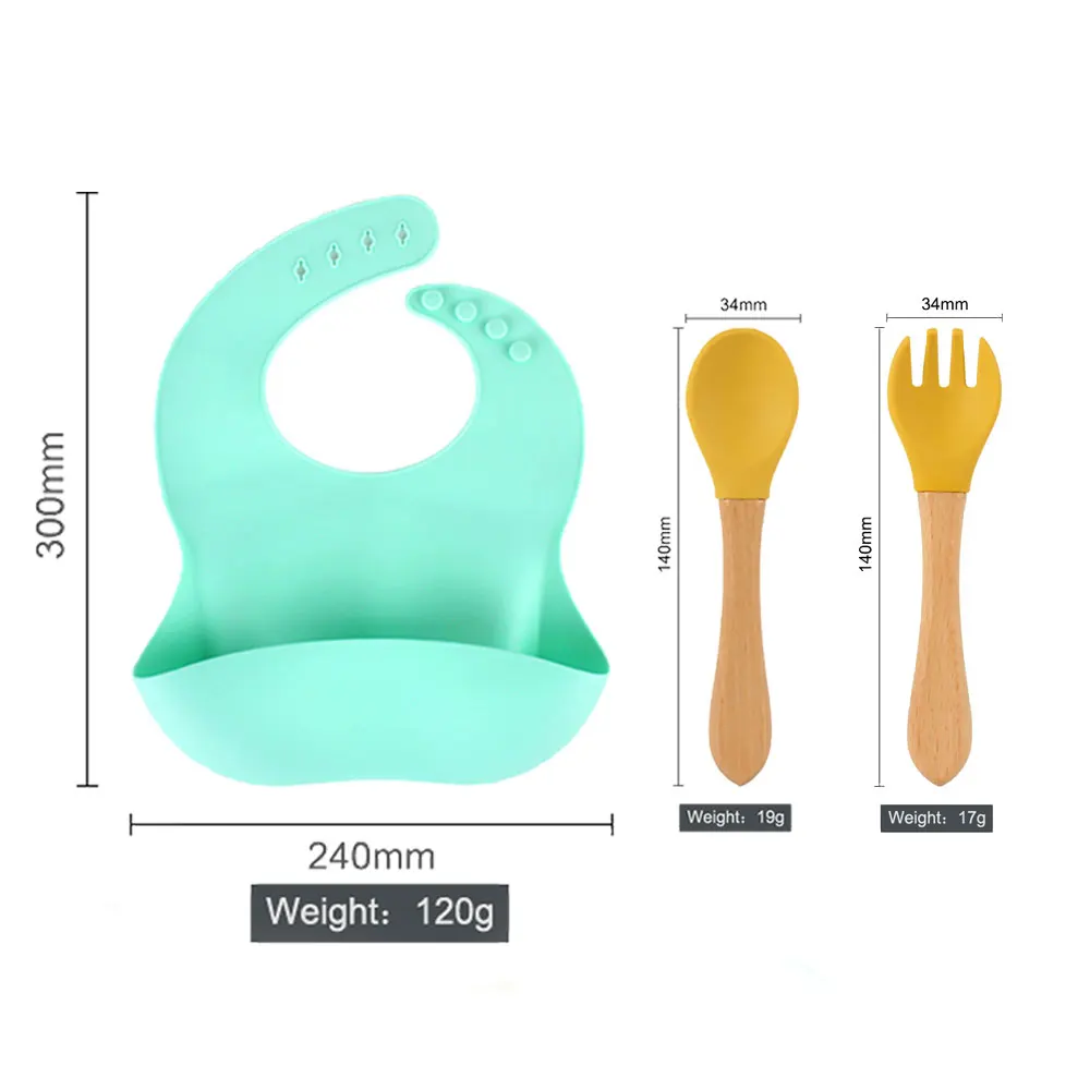 Детская миска, ложка, вилка, нагрудник, набор посуды, Нескользящая силиконовая миска для кормления детей с крышкой, посуда, детская посуда