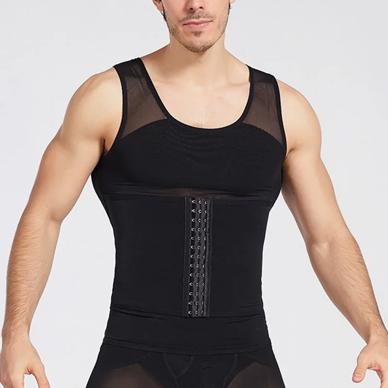 Мужской корректирующий утягивающий жилет с крючком и застежкой для глаз, регулируемый утягивающий живот, тренировочный жилет для талии, мужская майка для похудения, дышащая сетчатая корректирующая одежда для тела