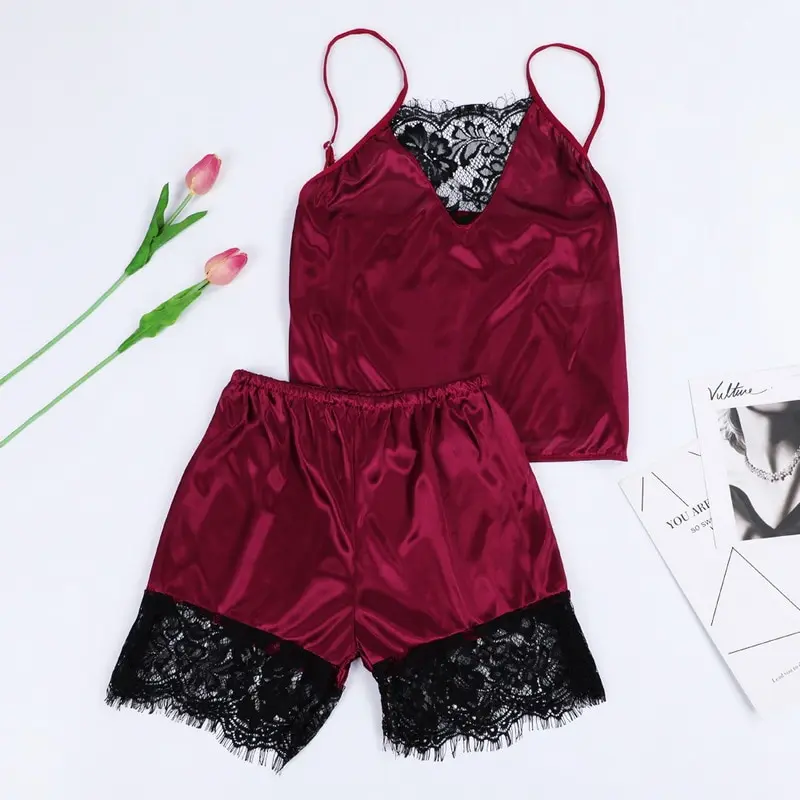 Сексуальные женские кружевные пижамные комплекты, 2020, без рукавов, на бретельках, пижамы, 2 шт., с отделкой, Атласный топ на бретельках, ночное белье, ночные рубашки, нижнее белье, пижама MujerПримечания:1. Пожалуйста, учитывайте разницу в 1-3 мм из-за ручного измерения, спасибо за понимание!2. Из-за разницы между различными мониторами, пожалуйста, поймите, что изображение может не отражать фактический цвет товара.
