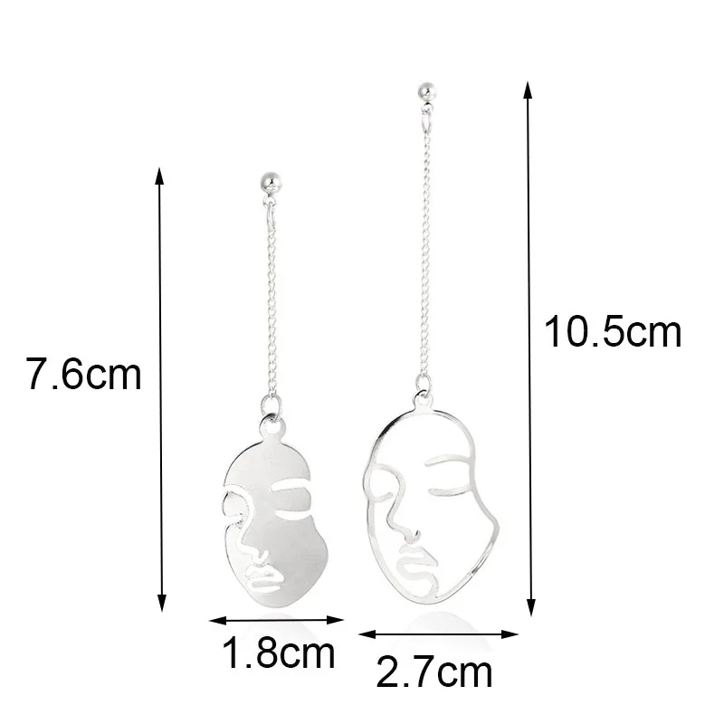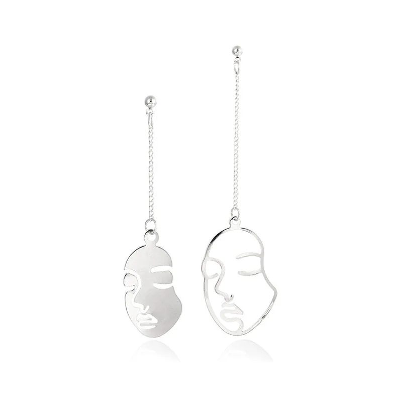 Серьги в виде лица золотого цвета для женщин, креативные ажурные крупные абстрактные модные украшения для ушей в Корейском стиле