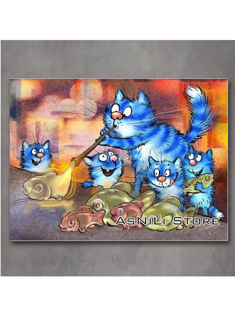 Алмазная 5D картина сделай сам с мультяшным голубым котом, рыболовная мозаика, квадратная, круглая вышивка крестиком, вышивка, Рождественское украшение для дома, подарок