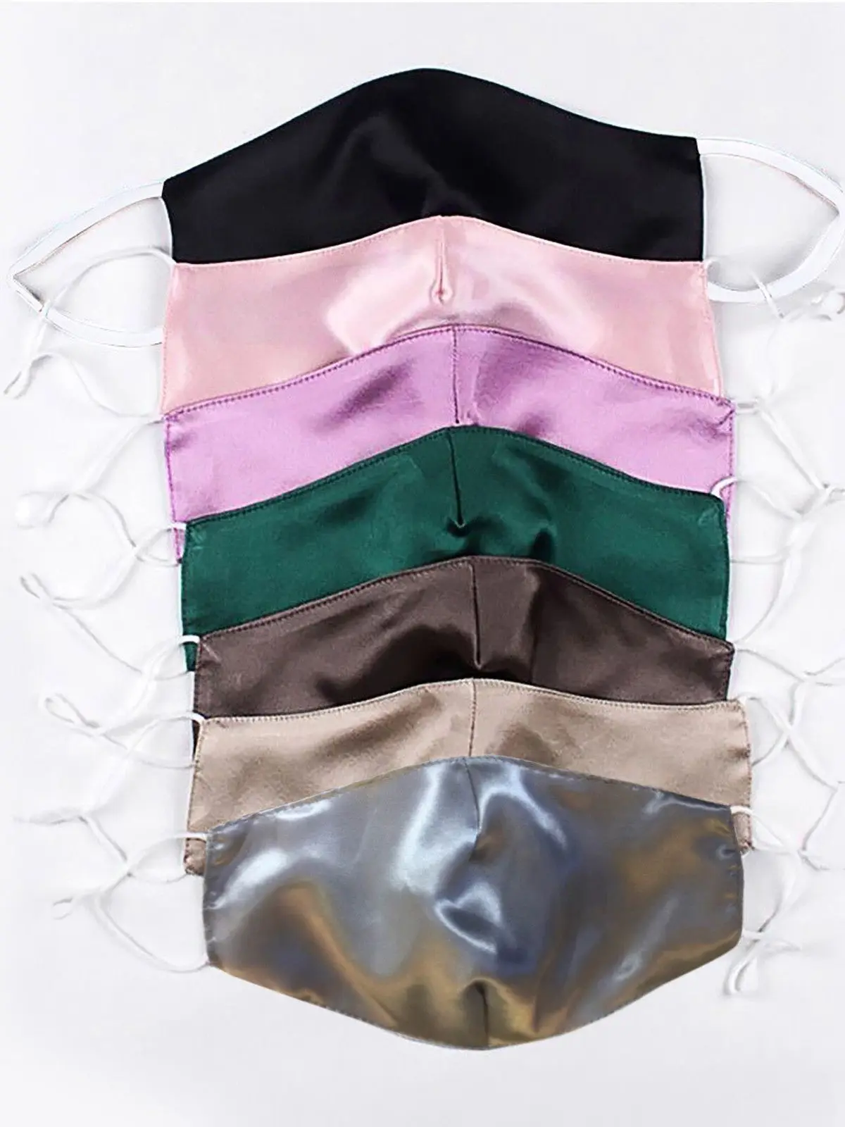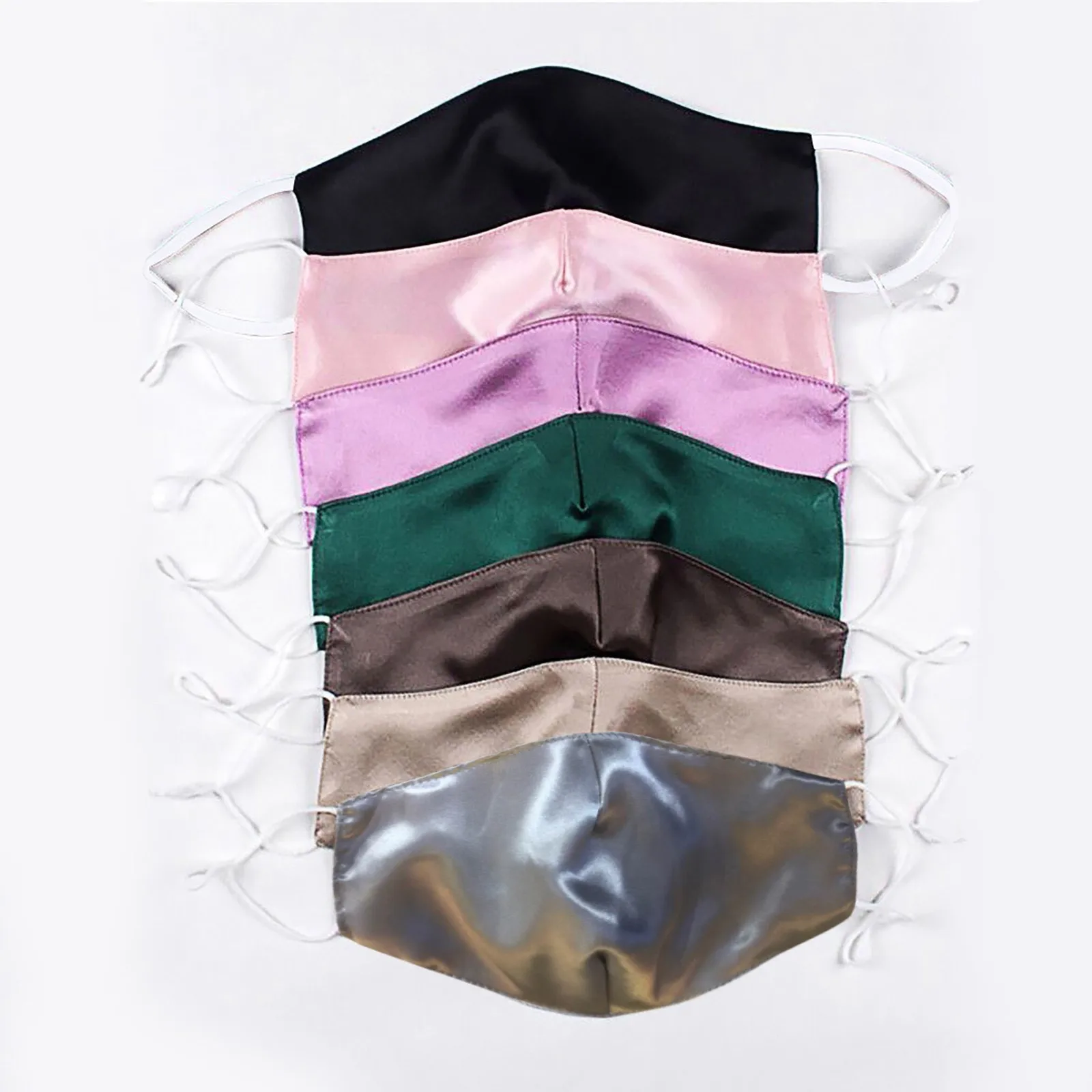 Двухслойная маска для лица из шелка и сатина, многоразовая, стирающ...