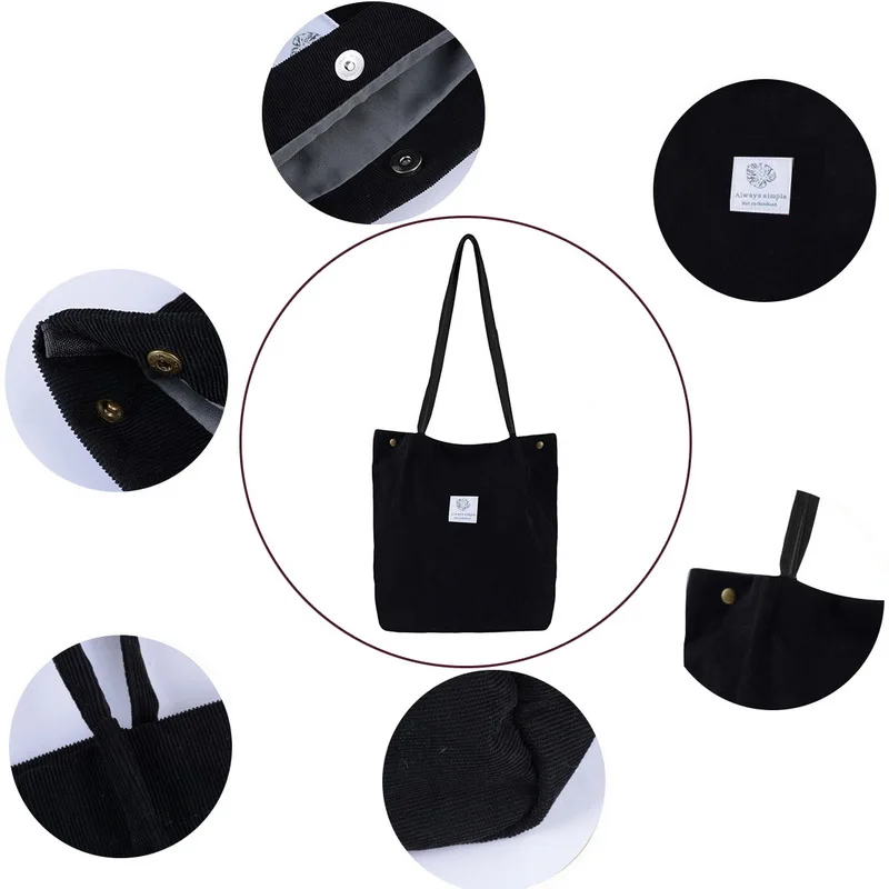 Вместительная женская Вельветовая Сумка-тоут, Женская Повседневная сумка через плечо, складные многоразовые дорожные повседневные сумки